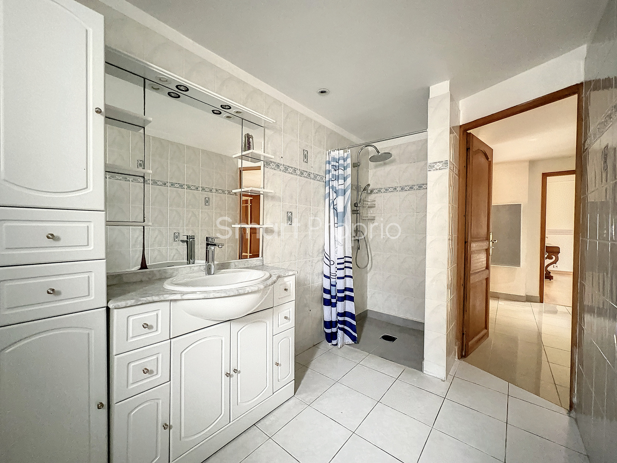 La maison est composée au RDC de 2 chambres, 1 salle d'eau, 1 cuisine, 1 salon accédant au terrain. À l'étage, vous trouverez 3 chambres, 1 mezzanine ainsi qu'une salle de bain.