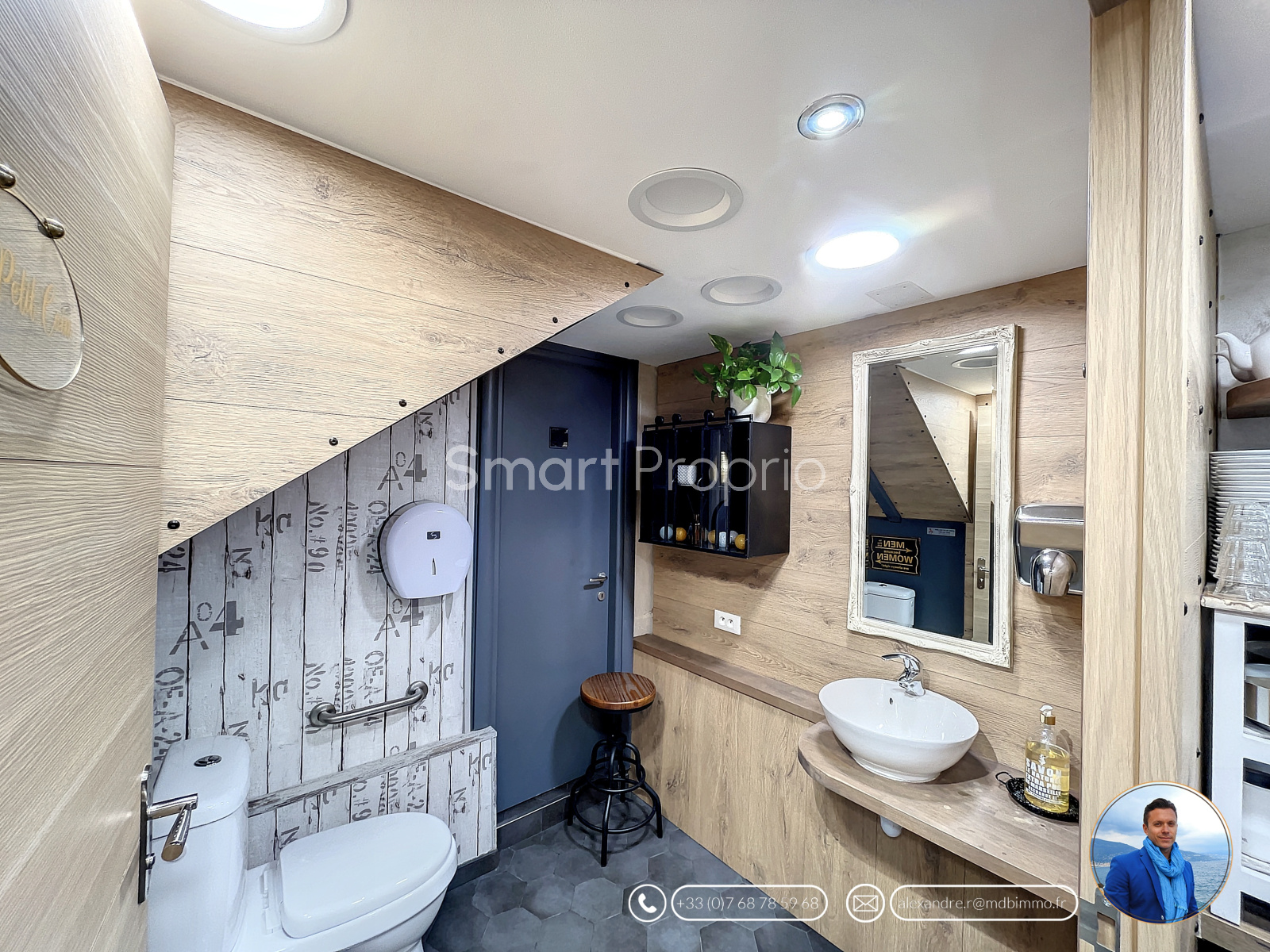 Dans le cadre d'une reprise vous apprécierez travailler avec du matériel de SNACKING et de BAR QUASI NEUF, et évoluer dans un agencement aux NORMES et AÉRÉ de 45m2 en tout (30m2 en bas / 15m2 de mezzanine).