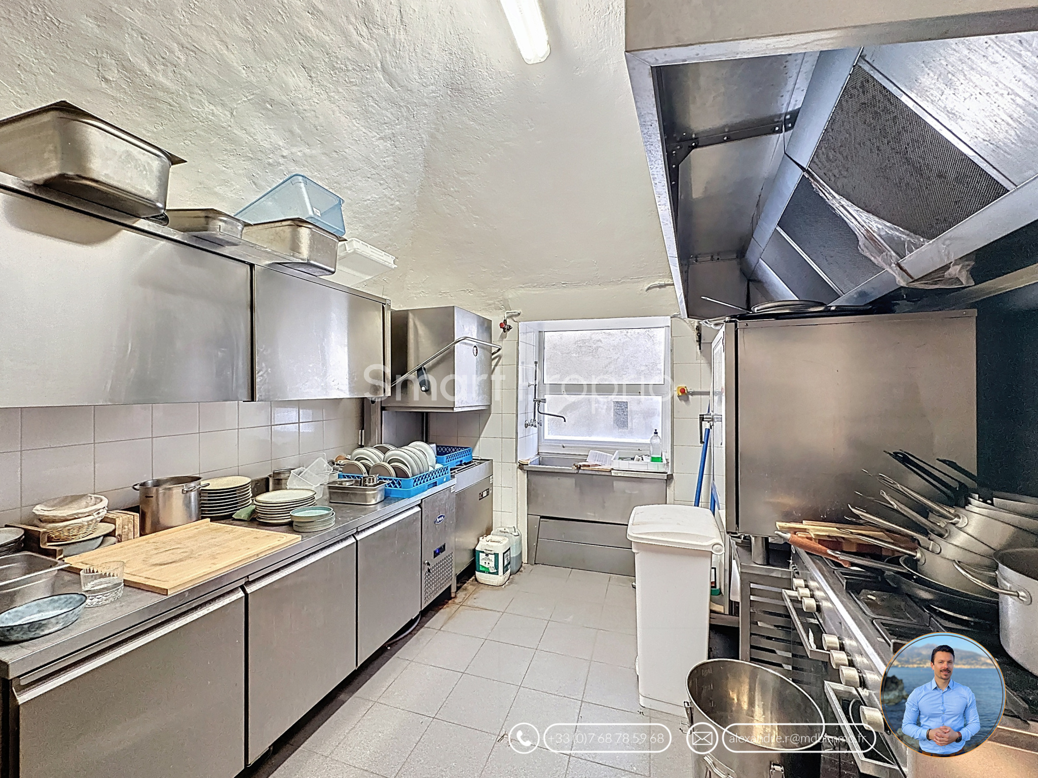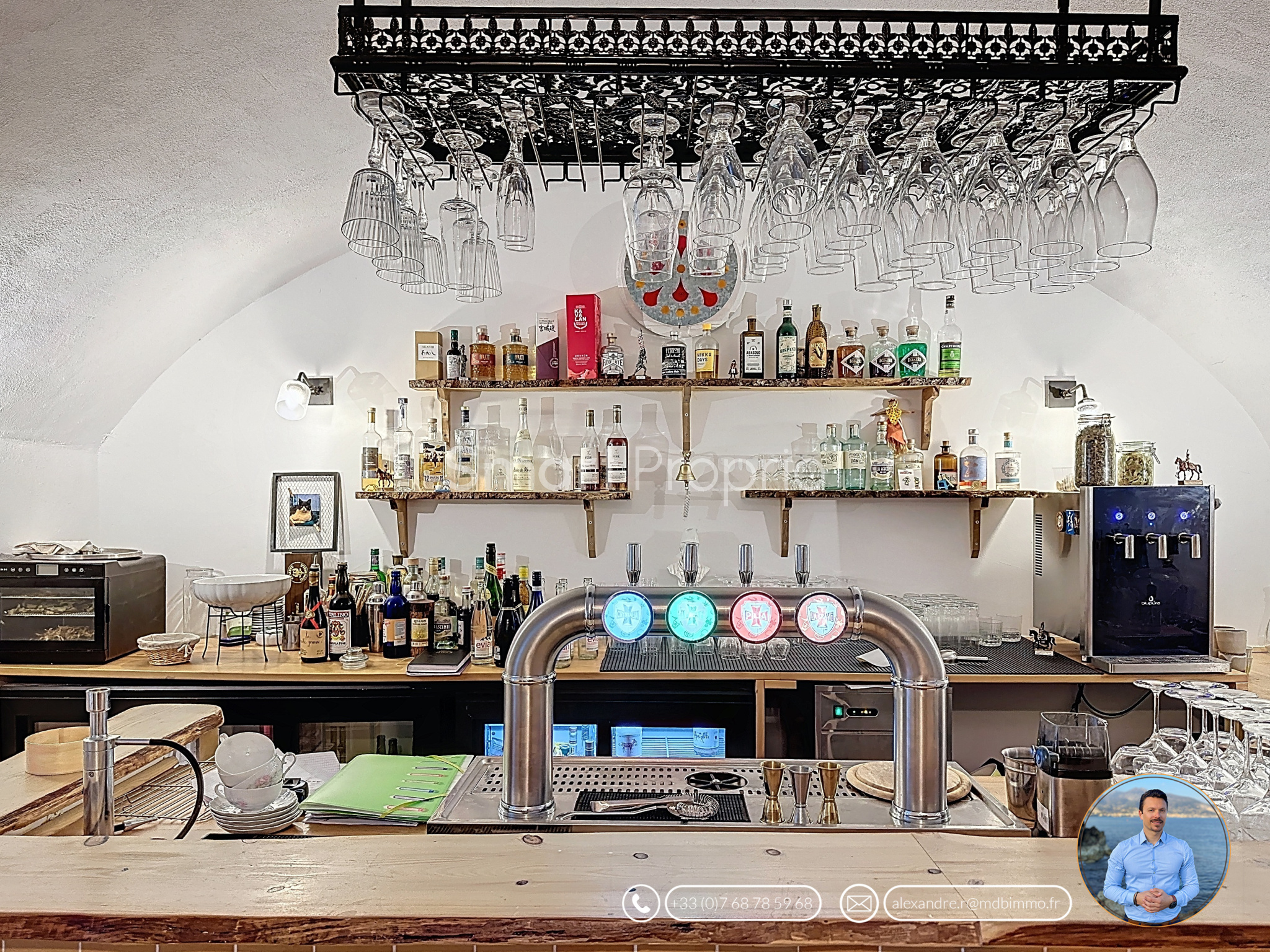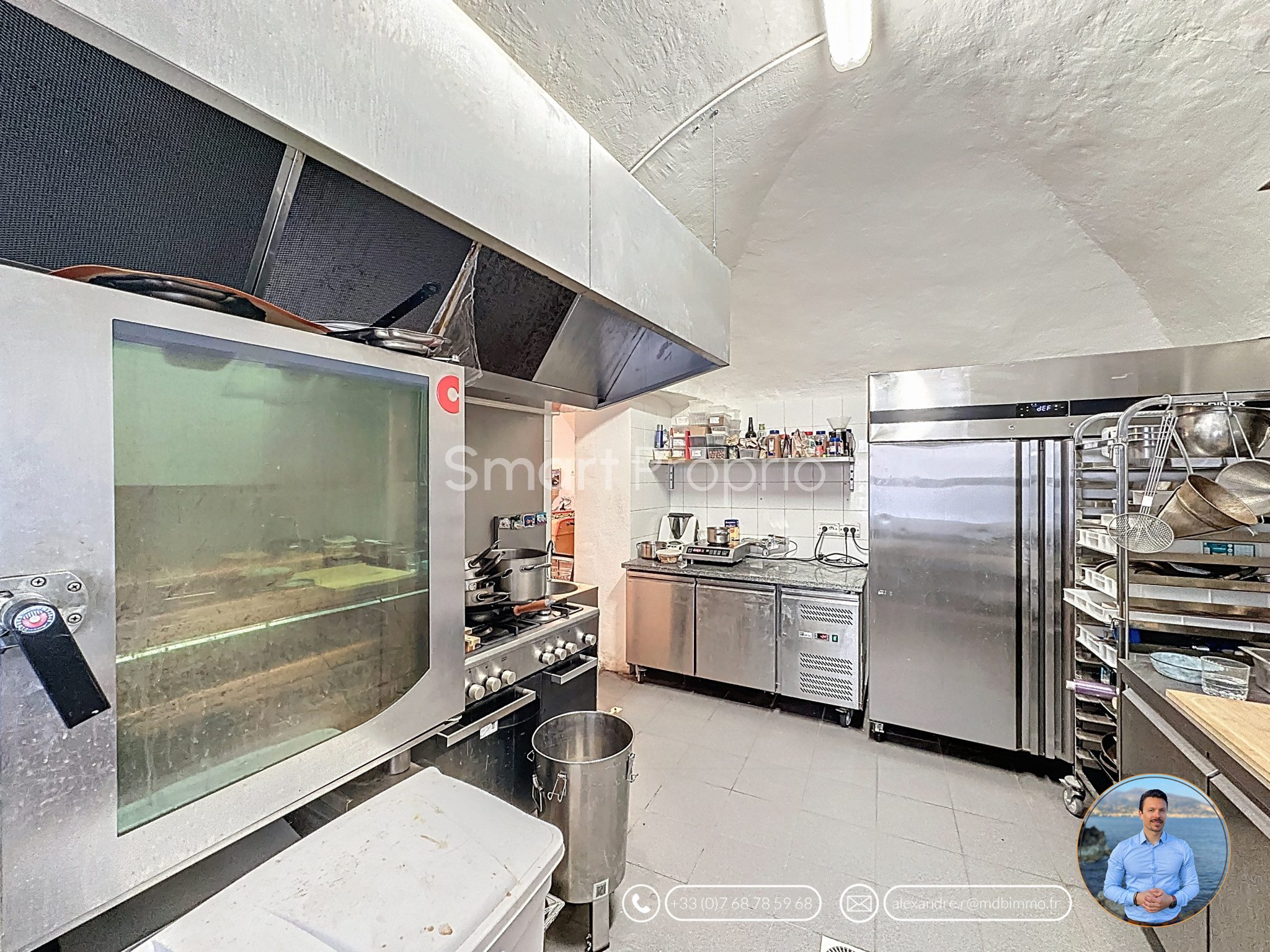 LOCAL ET MATÉRIEL: D'une superficie totale d'environ 142,90 m2, l'ensemble comprant une 1ère GRANDE SALLE DE RESTAURATION dès l'entrée, une salle de BAR, une CUISINE avec EXTRACTION en façade, une buanderie, un WC , une SALLE ANNEXE DE RESTAURATION en VERIÈRE VUE MER ET COLLINE équipée également de sa propre cuisine + une VASTE CAVE située au sous-sol équipée de l'ÉLECTRICITÉ et d'une VENTILATION. Utile également une TERRASSE OUVERTE et un JARDIN en contre bas. Possibilité d'installer une terrasse en front de l'établissement avec accord mairie.