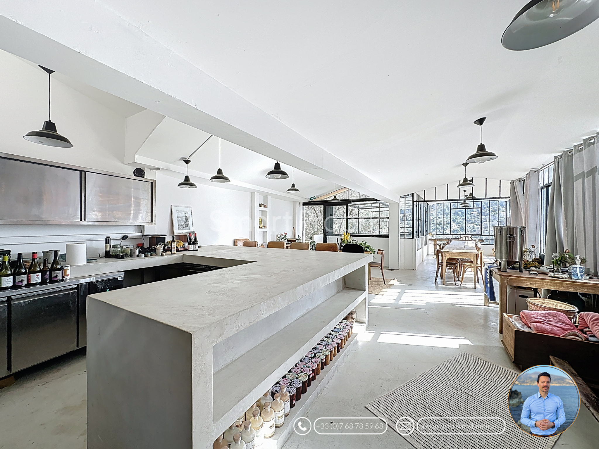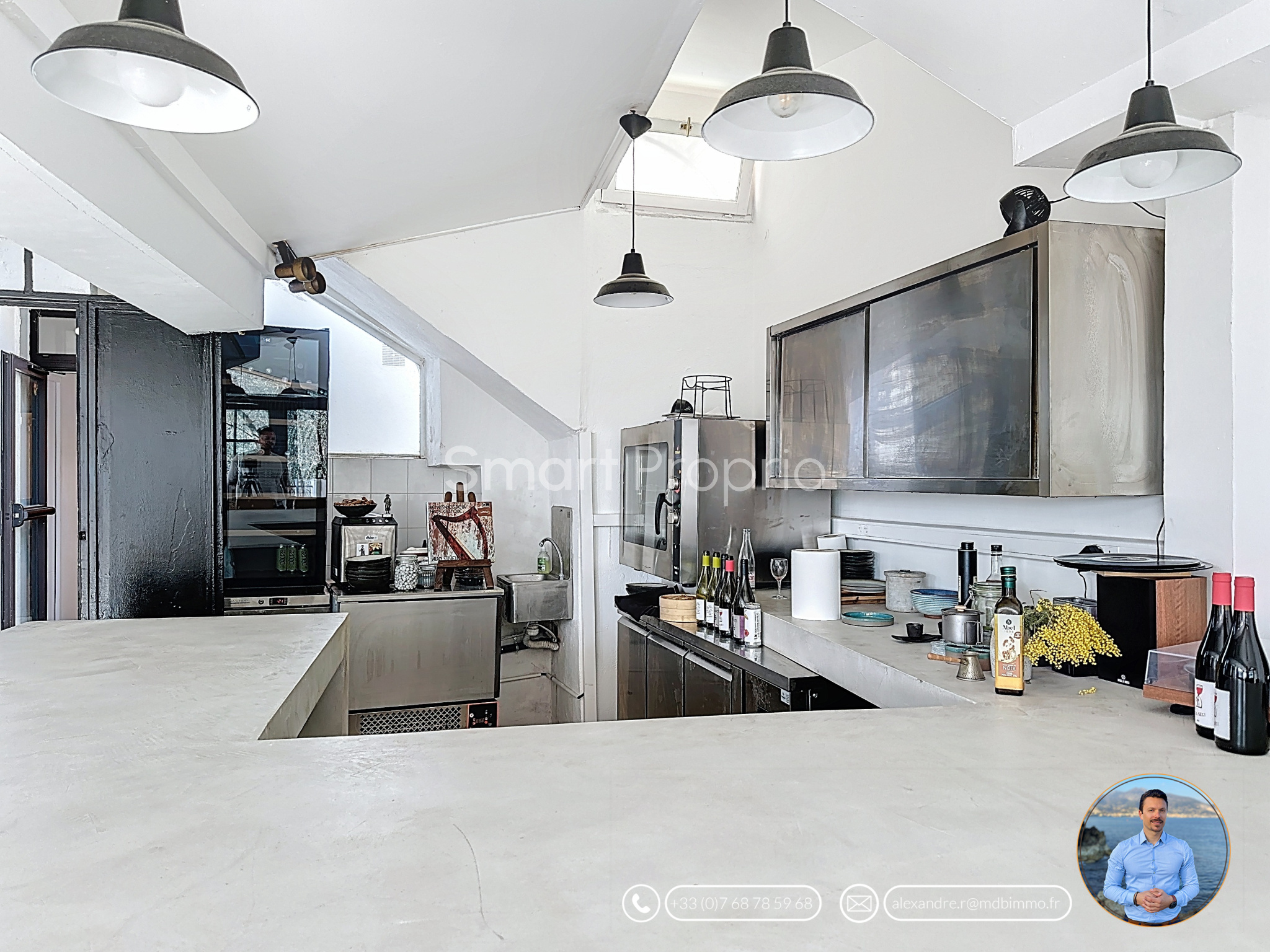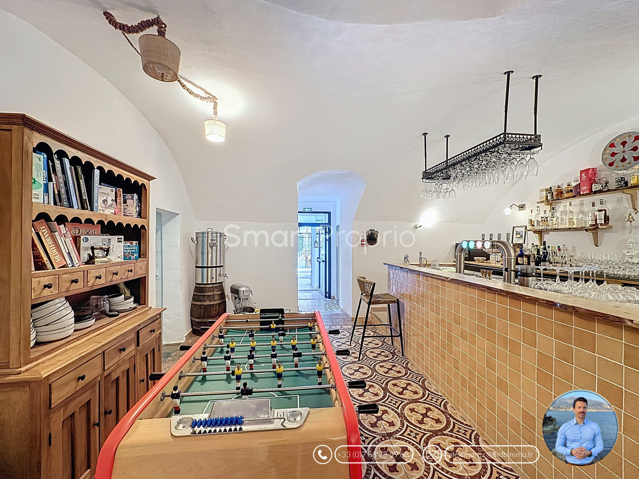 LOCAL ET MATÉRIEL: D'une superficie totale d'environ 142,90 m2, l'ensemble comprant une 1ère GRANDE SALLE DE RESTAURATION dès l'entrée, une salle de BAR, une CUISINE avec EXTRACTION en façade, une buanderie, un WC , une SALLE ANNEXE DE RESTAURATION en VERIÈRE VUE MER ET COLLINE équipée également de sa propre cuisine + une VASTE CAVE située au sous-sol équipée de l'ÉLECTRICITÉ et d'une VENTILATION. Utile également une TERRASSE OUVERTE et un JARDIN en contre bas. Possibilité d'installer une terrasse en front de l'établissement avec accord mairie.