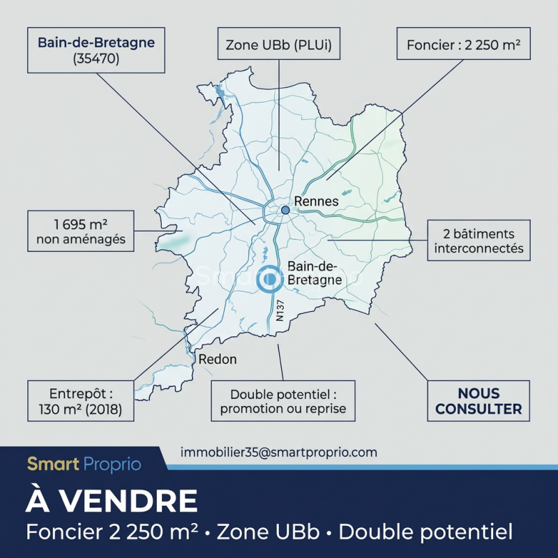 Bain-de-Bretagne – Foncier 2 250 m² avec locaux d’activité –...