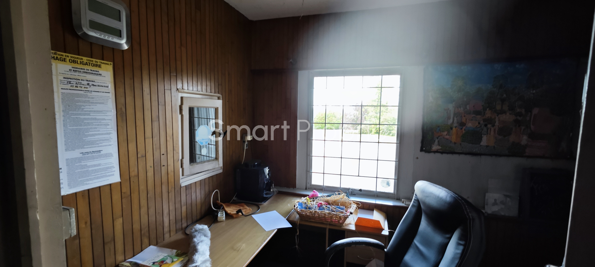 béton complète, comportant différents compartiments séparés par des murs en agglomérés ainsi que trois