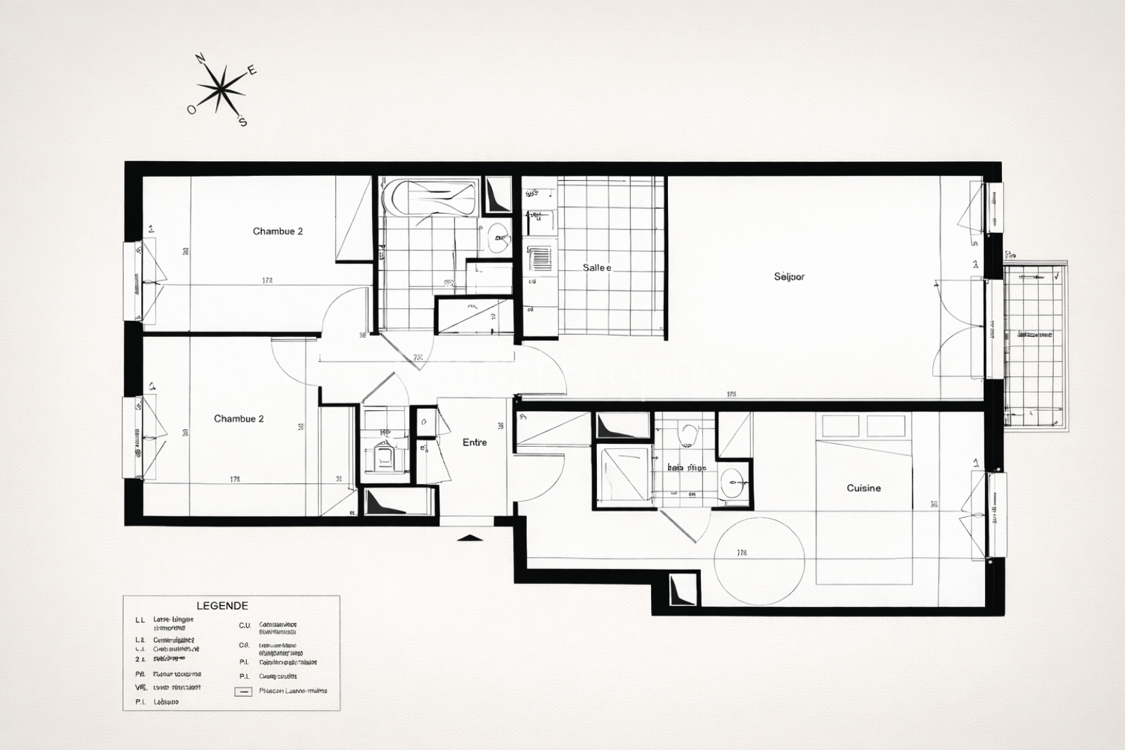 Trois chambres avec placards, dont une suite parentale avec salle d’eau et WC, Une salle de bains indépendante, Un WC séparé, Un couloir spacieux, structurant l’appartement et facilitant les rangements.La double exposition apporte une belle luminosité tout au long de la journée.