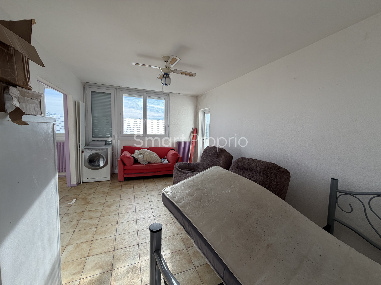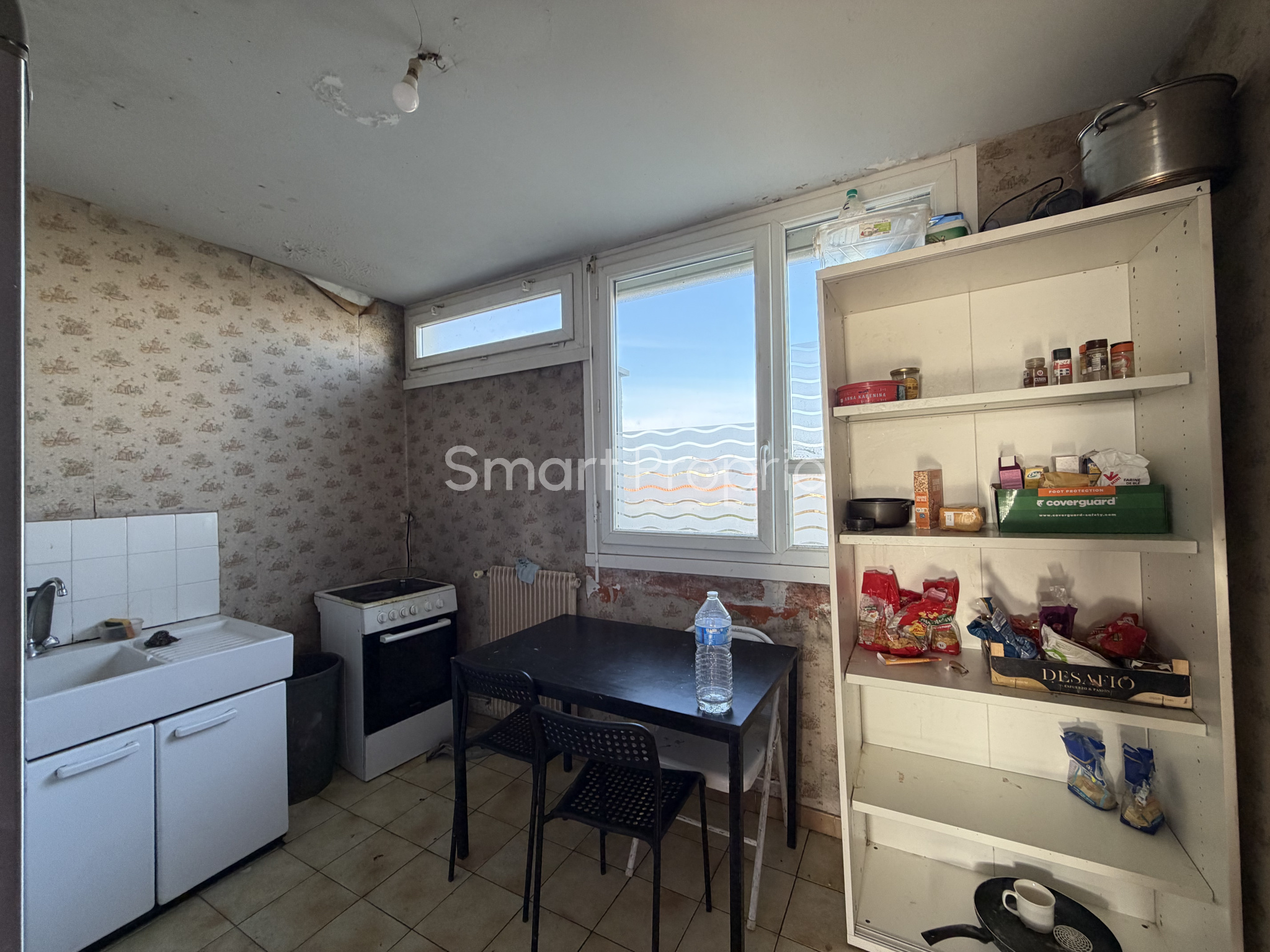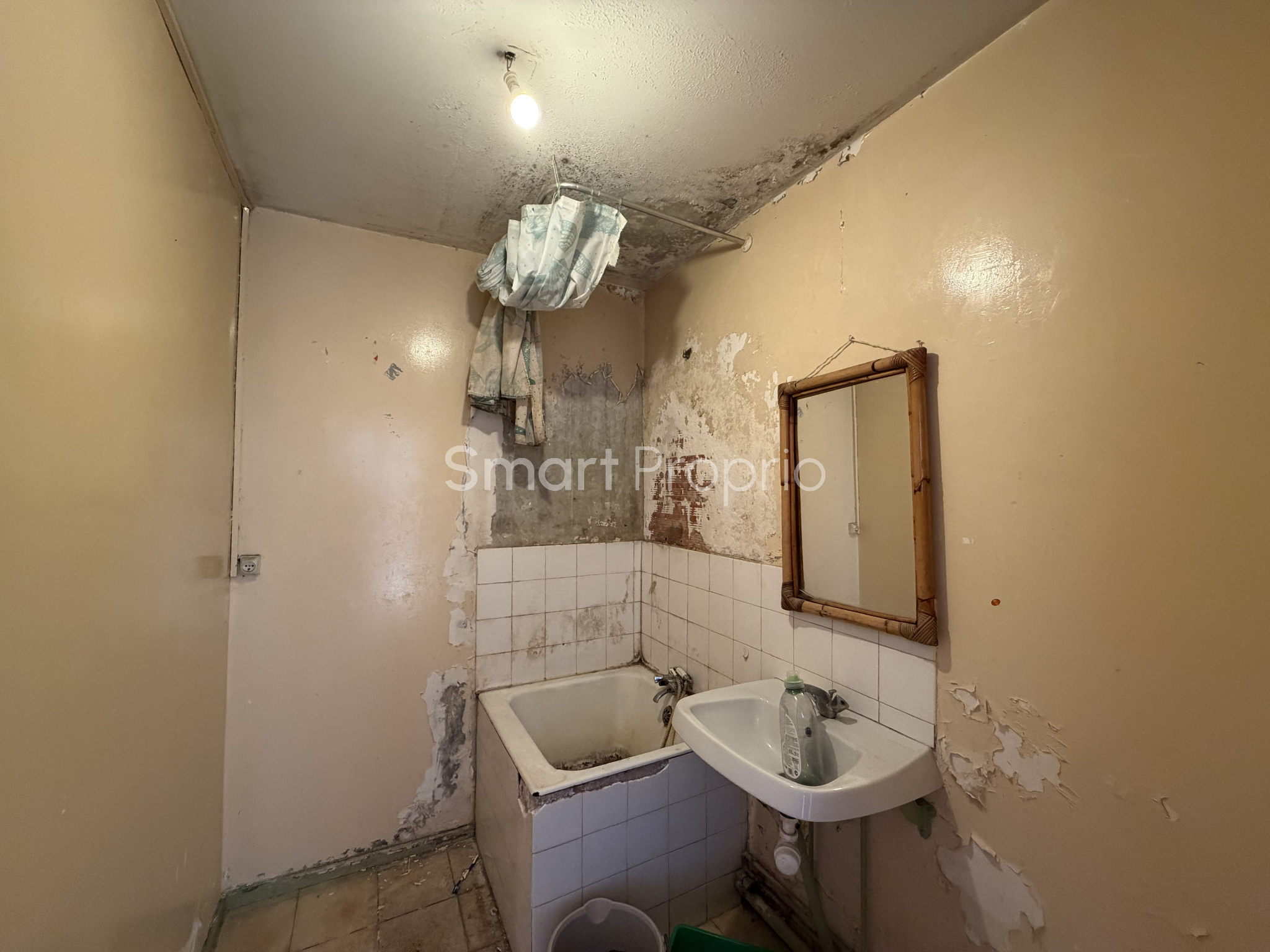 L'appartement à rénover entièrement se compose d'une entrée avec placard, d'une cuisine séparée avec cellier attenant. Un salon modulable, permettant la création d'une chambre supplémentaire.