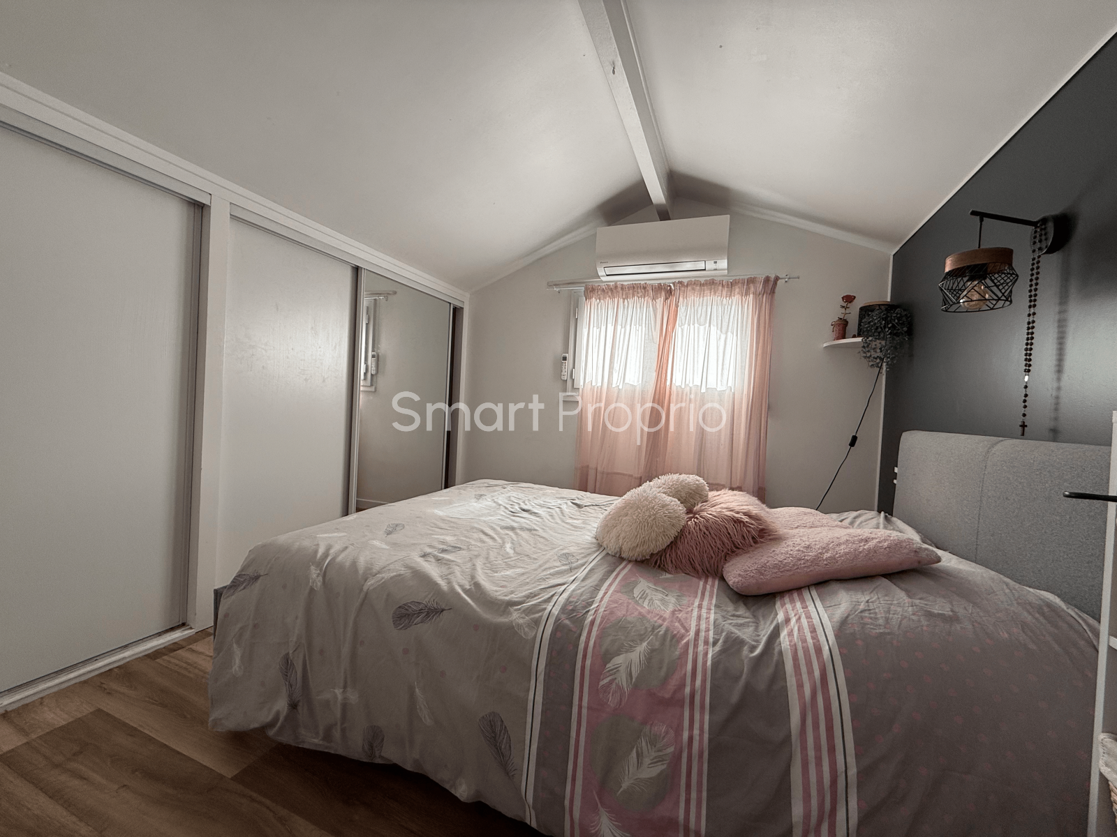 Une chambre avec placard , une salle d'eau et un wc séparé.