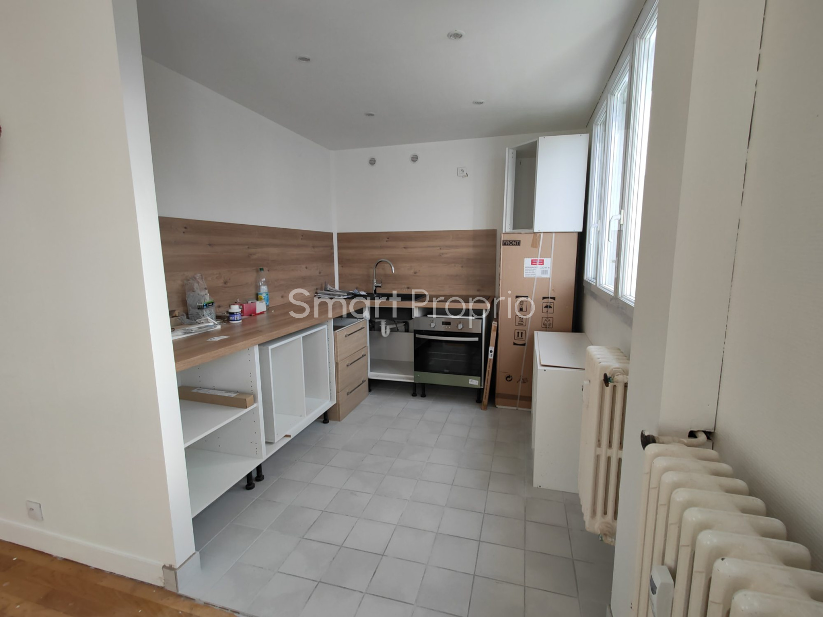 L'appartement est en cours de rénovation et il reste très peu de choses à réaliser, les éléments neufs de cuisine étant compris dans la vente et à finir de poser. pas de travaux de prévus dans la copropriété.