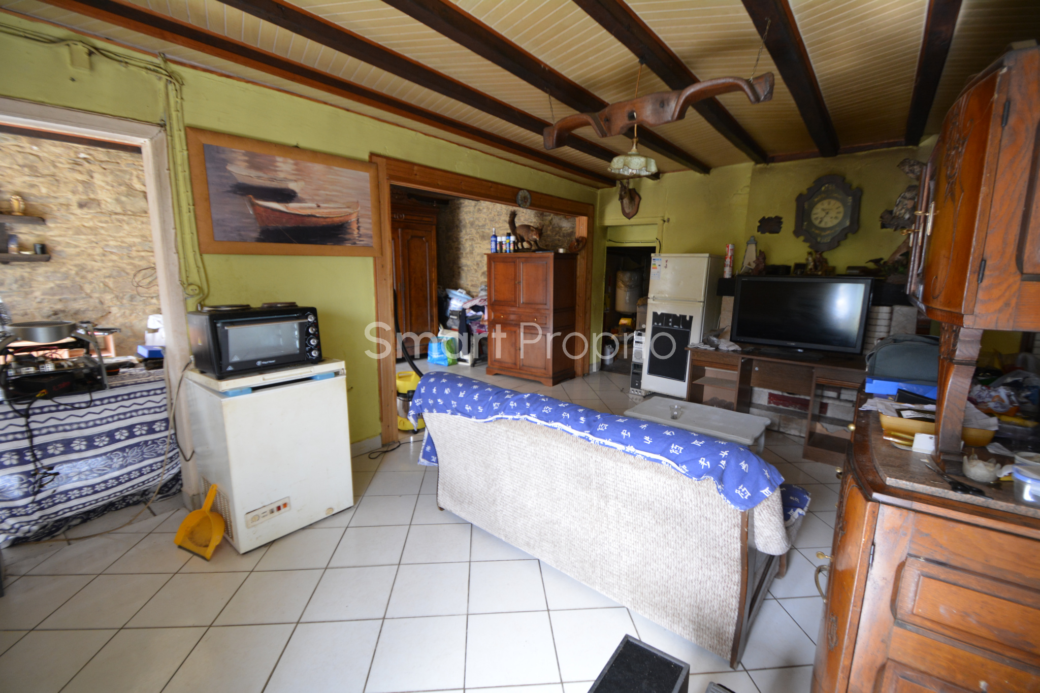 Actuellement seul le RDC est aménagé, le grenier est aménageable sur toute la surface de la maison.