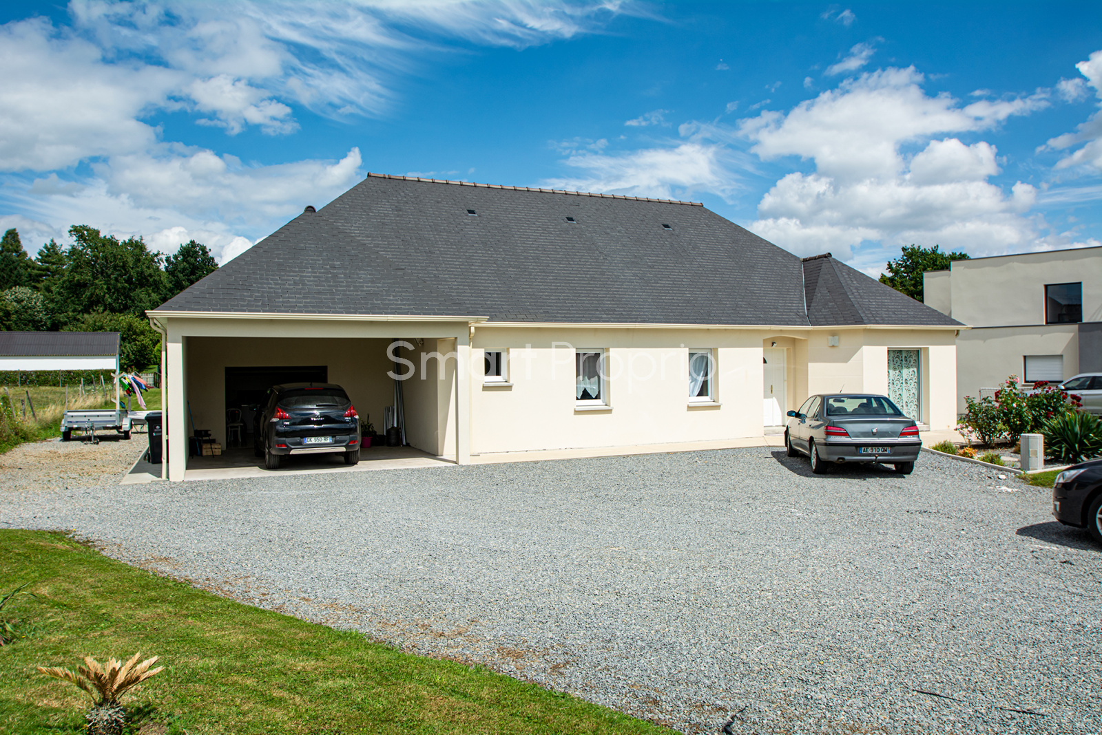 Vous disposez également d'un garage avec une porte motorisée, ainsi que d'un préau vous permettant de protéger un second véhicule.