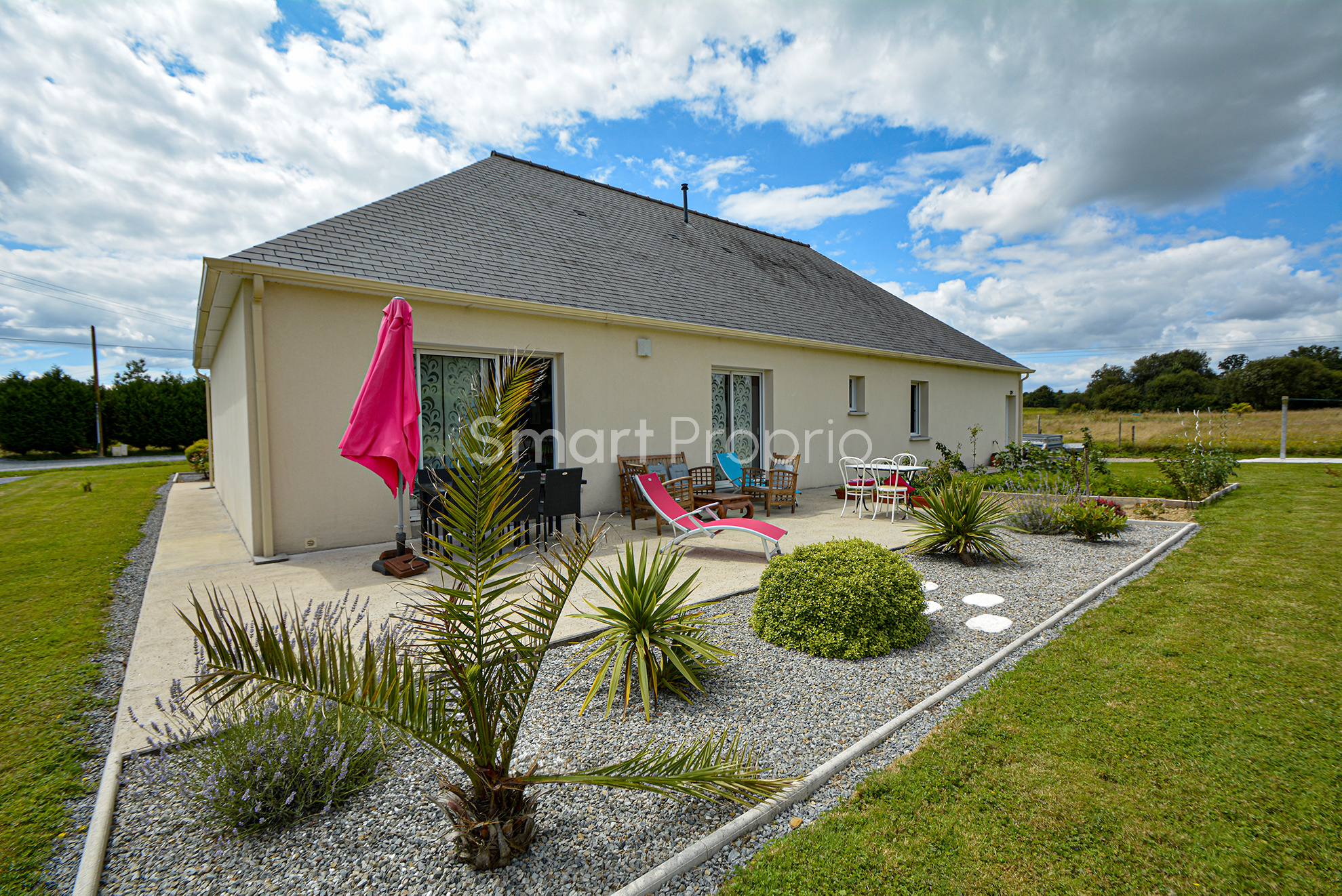 Au CALME, Maison familiale de 127m² label BBC de 2013 avec deux terrasses et jardin de 2002 m², à l'entrée de la commune de GUIPRY-MESSAC.