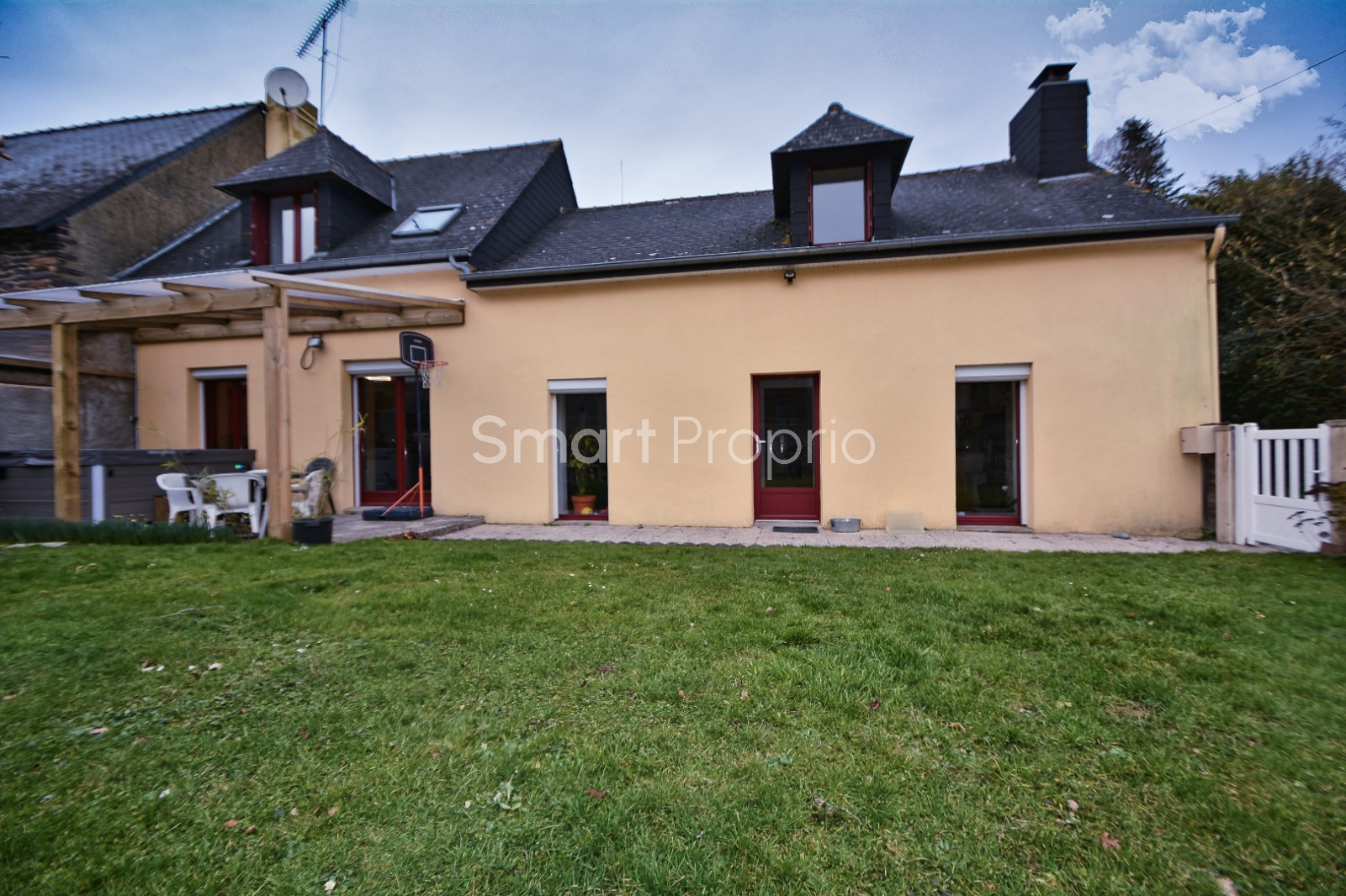 La vente comprend également un pré de 670 m² en bordure immédiate de la propriété avec un car-port et de quoi faire un grand potager.