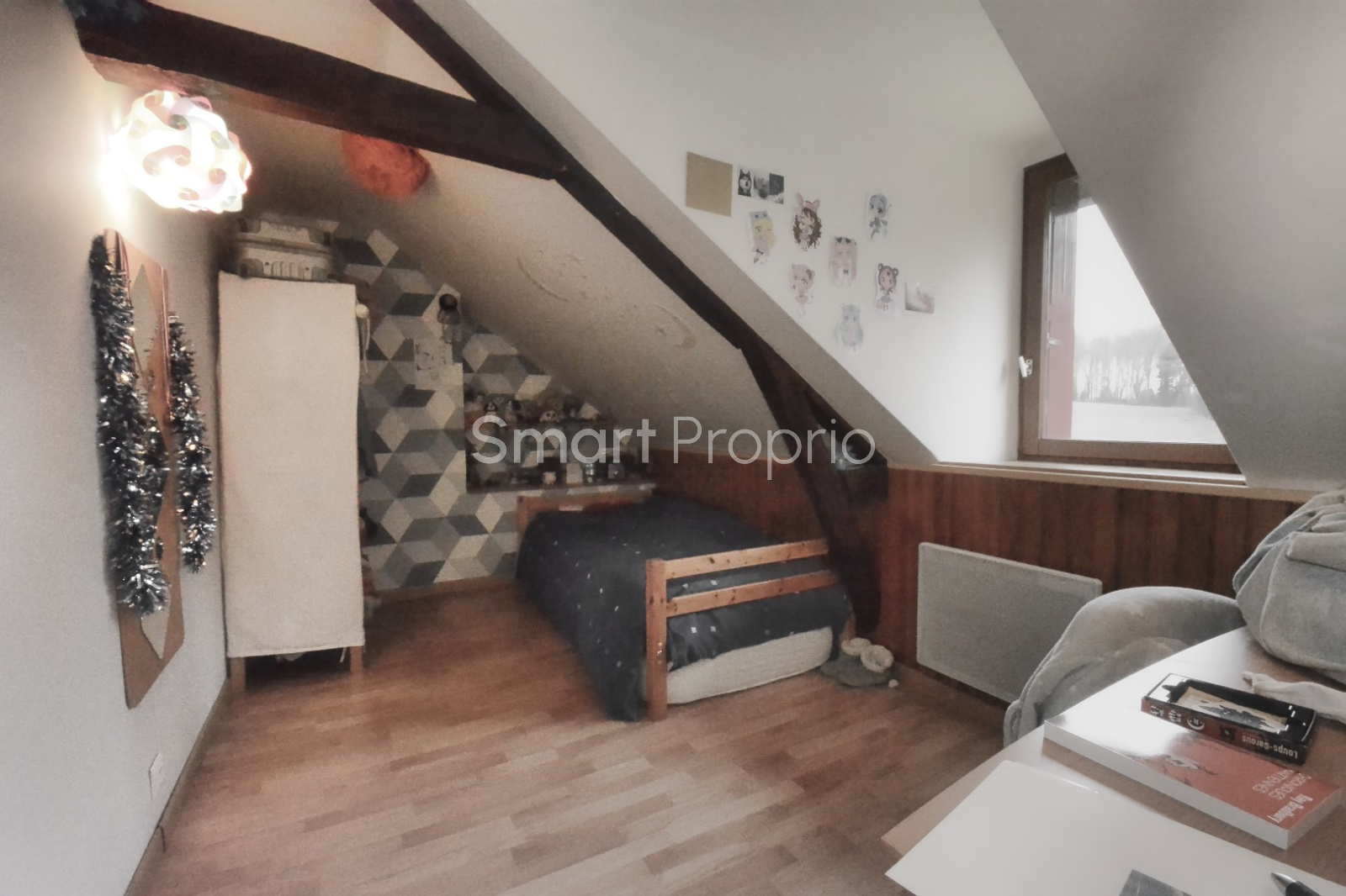 A l'arrière, un grand garage à l'étage duquel vous disposerez d'une pièce supplémentaire à rénover, un cellier, une cave et un débarras.