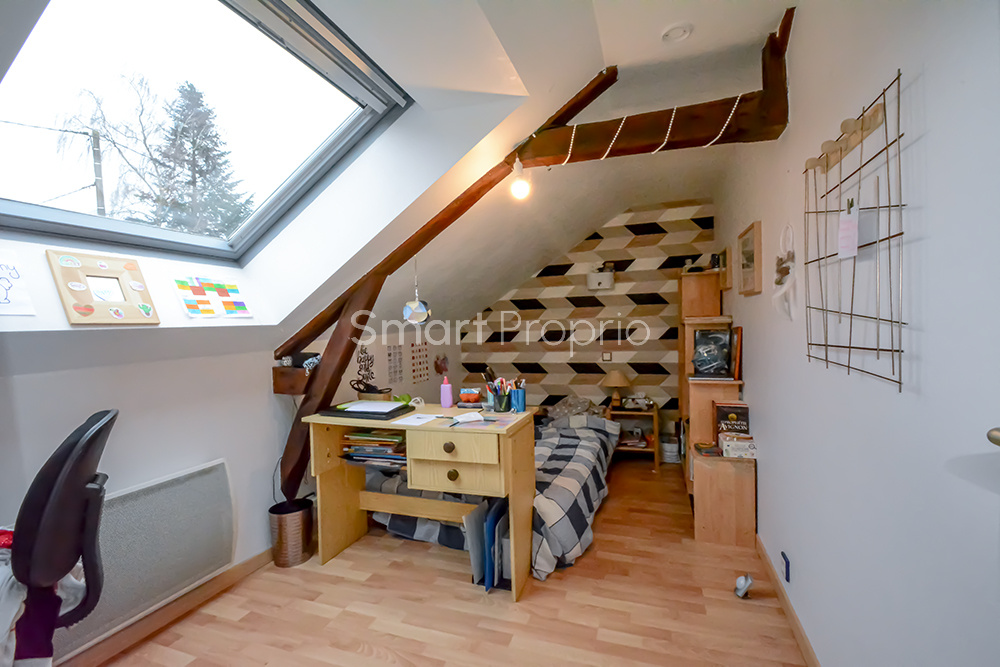 La maison se compose au RDC d'un vaste salon-séjour avec poêle à granules (31m²), d'un espace dont l'usage est actuellement affecté à celui d'un bureau (15m²), une cuisine équipée et aménagée neuve (15m²) avec une cheminée/insert, un WC. A l'étage, 3 chambres (2 de 10.5m² et 1 de 15m²), une salle d'eau avec double vasques et douche à l'italienne, un grand dégagement, un WC indépendant.