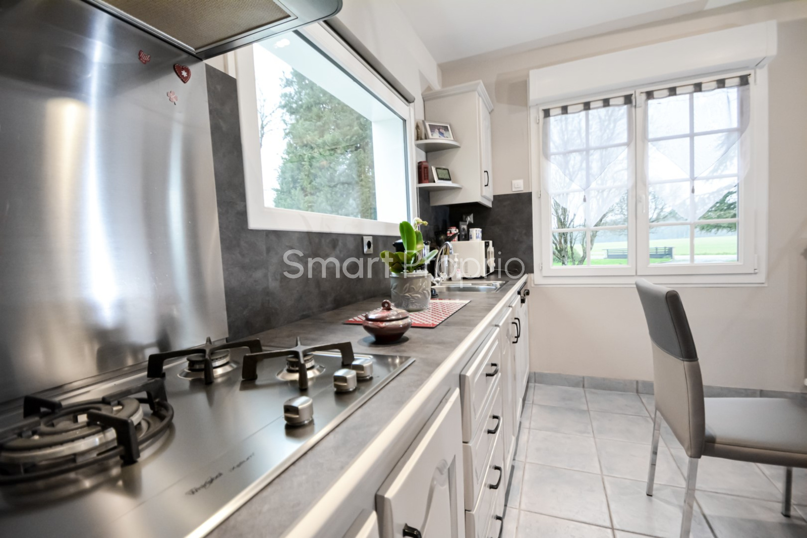 L'ensemble est équipé d'huisseries pvc double vitrage oscillobattantes et de volets roulants électriques.
