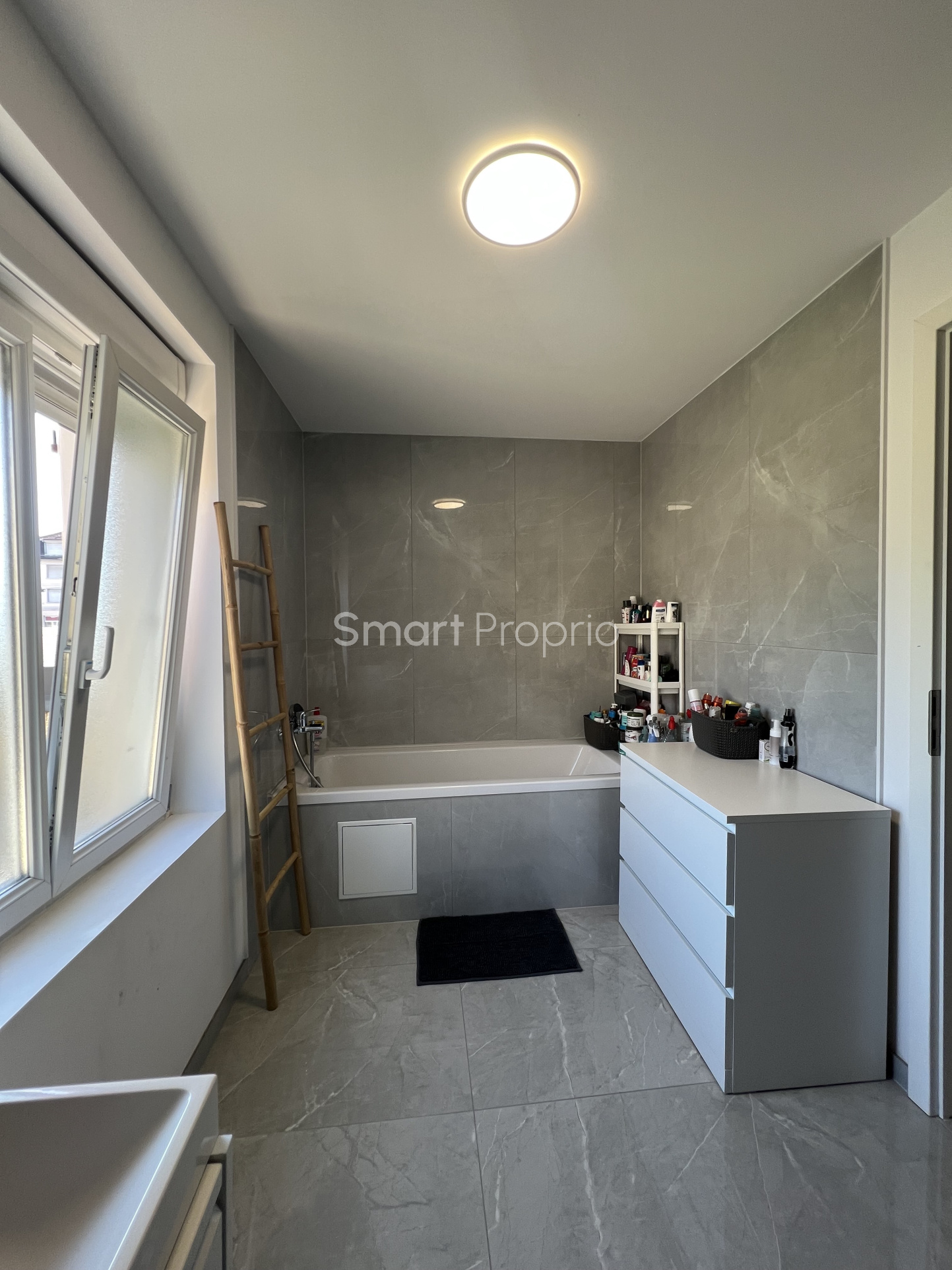 À l'étage , 3 belles chambres une salle de bains avec WC . avec un jardin jardin extérieur pour vos journées ensolleilées . Proche de la commune de Pfastatt , de la zone du kaligone , de toutes les commodités et des axes routiers . Mulhouse ville proche de la frontière Bâloise en Suisse ( 30 km ) et de la frontière allemande ( 20 km ) .