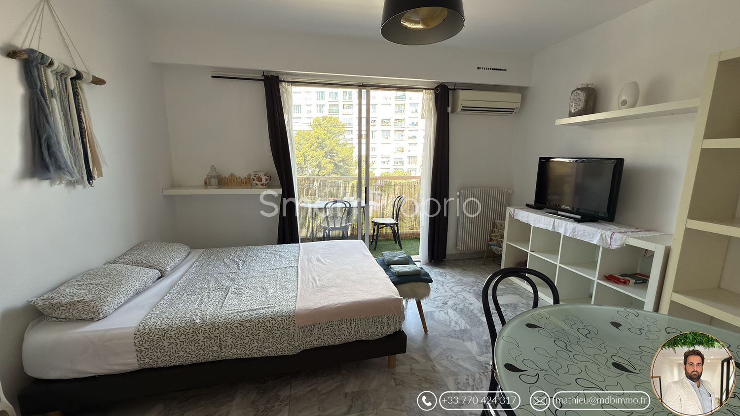 Idéal investisseur, cet appartement de 23,34 m², situé au dernier étage d’une résidence bien entretenue, est vendu entièrement meublé et équipé, prêt pour la location saisonnière. L’ancienne propriétaire l’exploitait déjà avec succès pendant l'été grâce à sa localisation stratégique : au pied du tramway, à quelques minutes à pied de la Promenade des Anglais et à moins 10 minutes en tramway de l’aéroport.