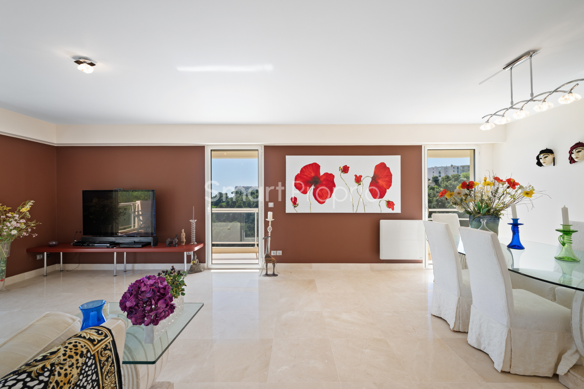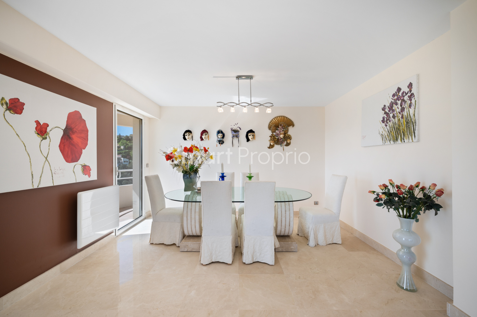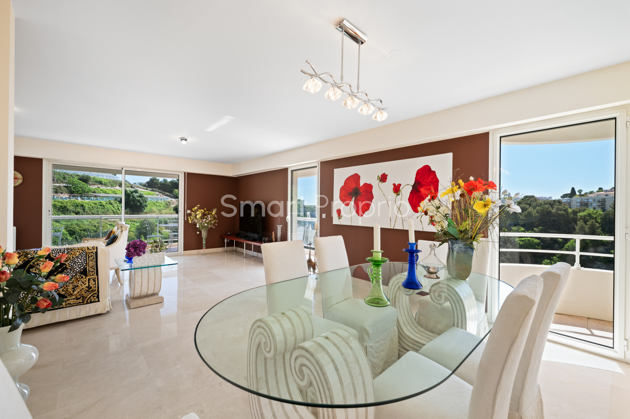 Ses multiples terrasses, dont une principale exposée plein Sud avec vue mer et collines, invitent à profiter pleinement de la luminosité, de la vue et du cadre.