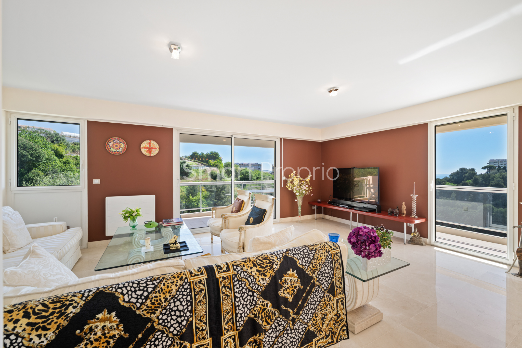 Nice (06200)Nice – Quartier Fabron : situé en avant-dernier étage (4e/5) d’une belle résidence avec piscine, sur le chemin de Terron, cet appartement d’angle traversant de 5 pièces – 132,62 m² offre un bel ensoleillement grâce à sa triple exposition Sud, Est et Nord.