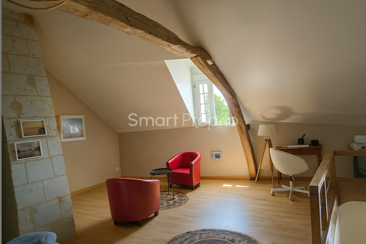 Commerces accessibles à pied, gare SNCF à 5 min, Saumur à 10 min, Angers à 30 min, accès autoroute Paris tout proche.