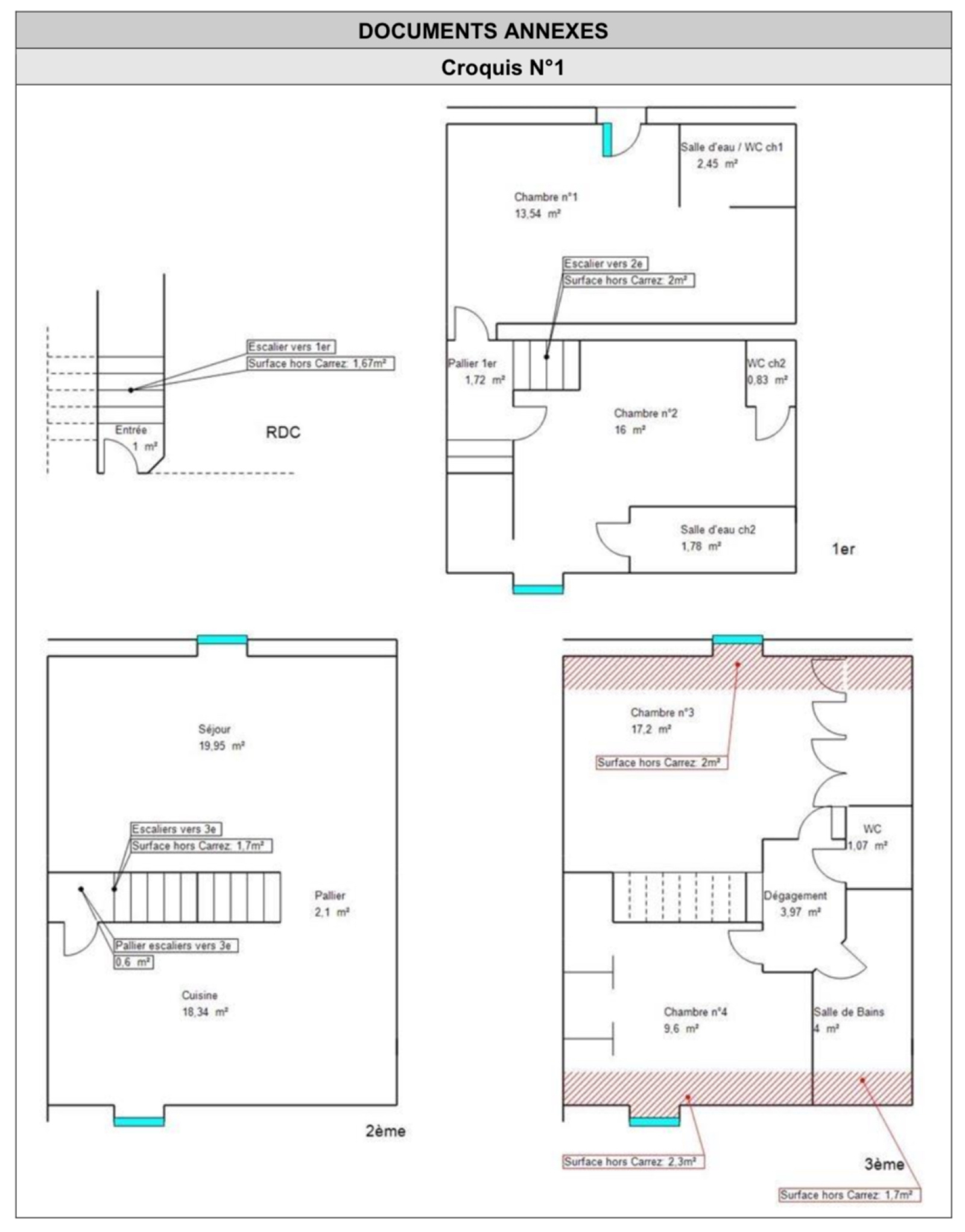 • Au 3ième : 2 chambres supplémentaires, un WC indépendant et une grande salle de bain familiale