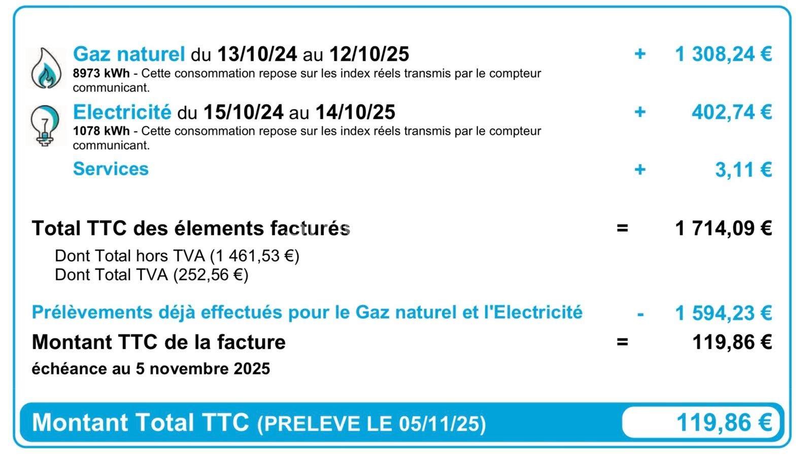 Suite à la réception des nouveaux diagnostics, attention, merci de bien voir la photo de la consommation réelle.