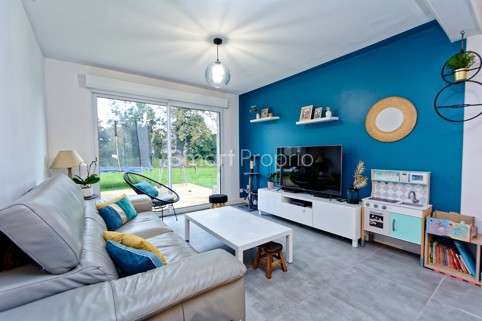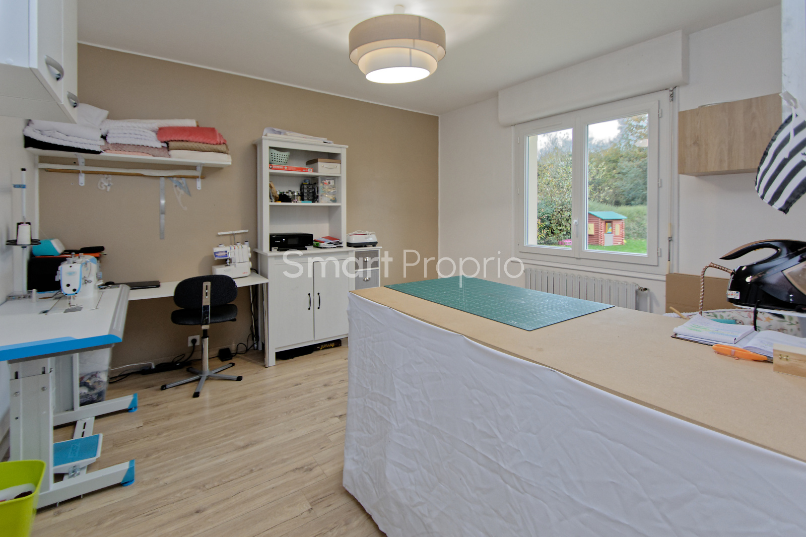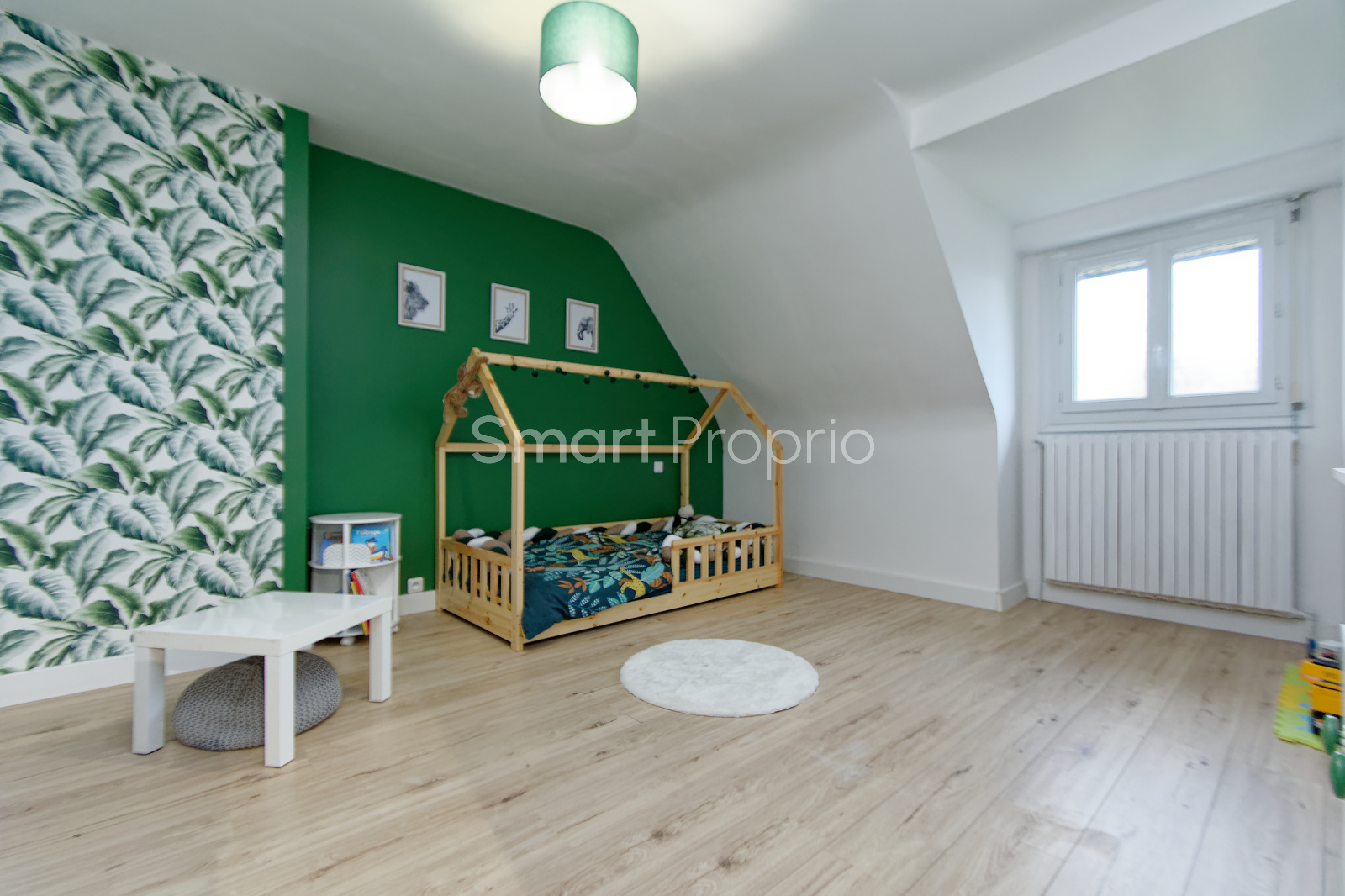 Elle donne sur un jardin et bénéficie d'une exposition est-ouest.