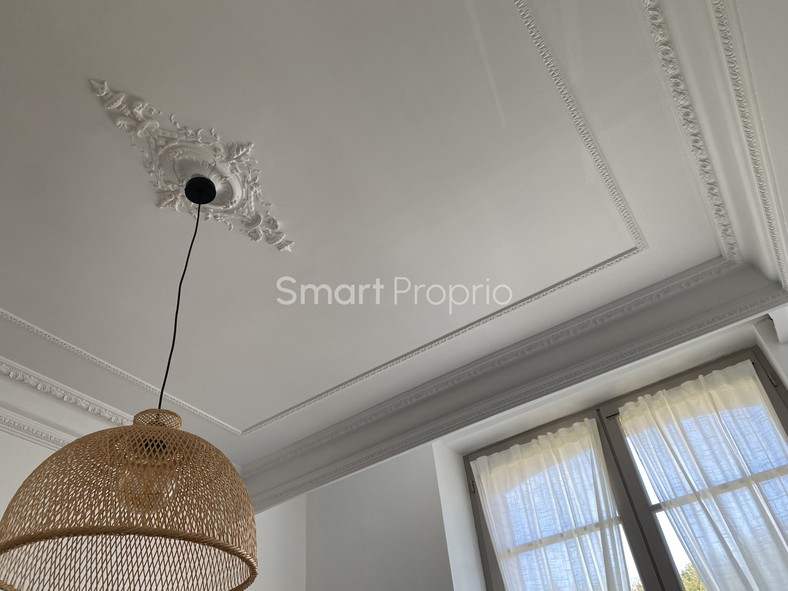 De belles hauteurs de plafonds moulurés lui confére un esprit chic.