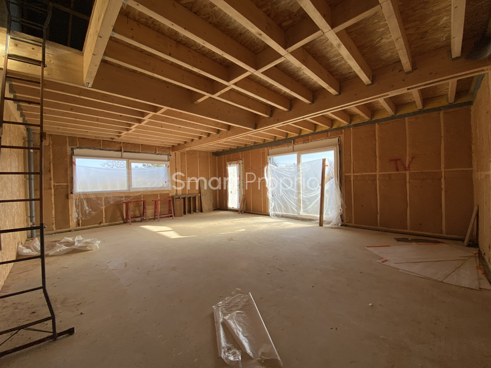 Bagnoles de l'Orne Normandie (61140)Nichée dans un endroit paisible aux portes de Bagnoles, maison neuve surface plancher au rdc 90m2 une surface habitable confortable ossature bois prévue pour être une maison passive. Une partie sur dalle béton pilotis isolée et une partie sur cave, planchers et cloisons bois charpente traditionnelle, tuiles de pays de 5 couleurs, double vitrage dont baies à galandage vitrage athermique au sud volets roulants , isolation laine de bois, vélux étage, reliée au tout à l'égout, câbles edf enterrés. Elle se compose d'une grande pièce de vie de 60m2 et 1 chambre sdb, 1 wc, étage 2 ou 3 chambres sur parcelle de 736m2. Des travaux sont à finir pour y loger. vue sur la campagne.