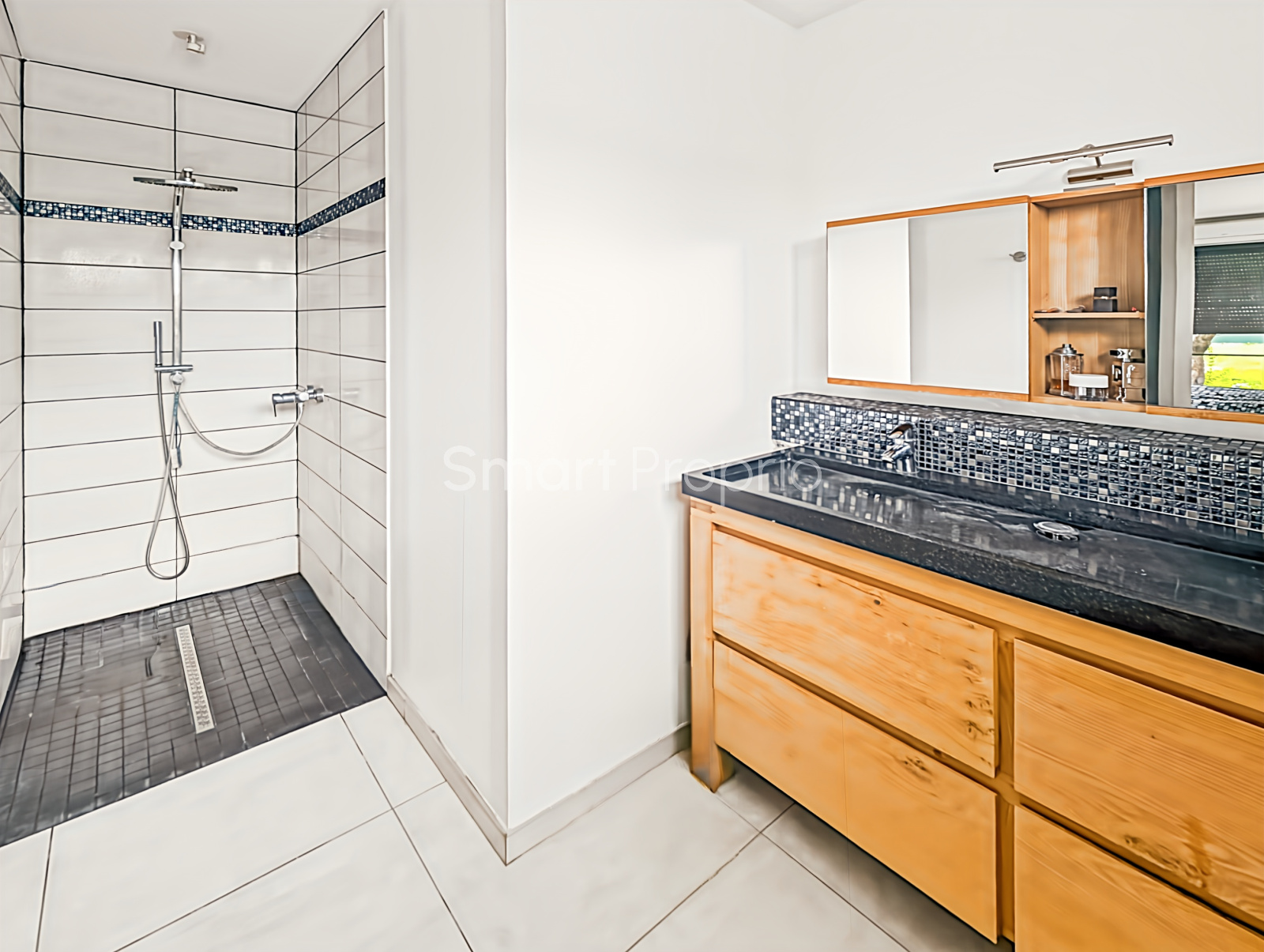 - Terrasse de 60 m² accessible par de larges baies vitrées à galandage.