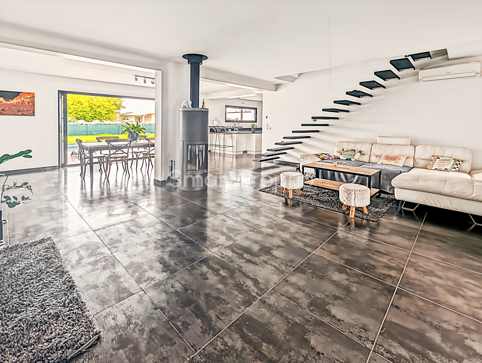- Climatisation réversible + poêle.