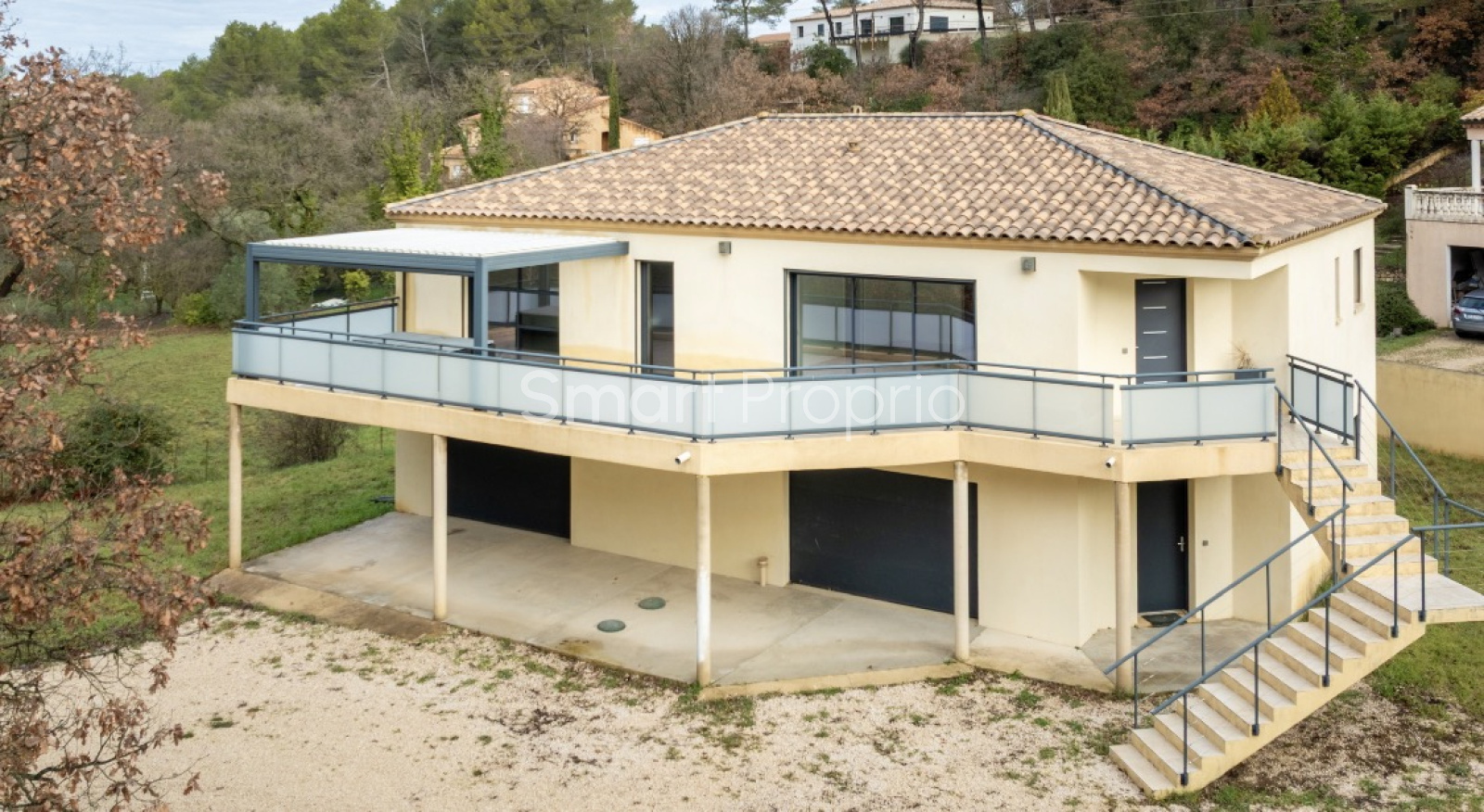 • Terrasse de 60 m² avec pergola bioclimatique