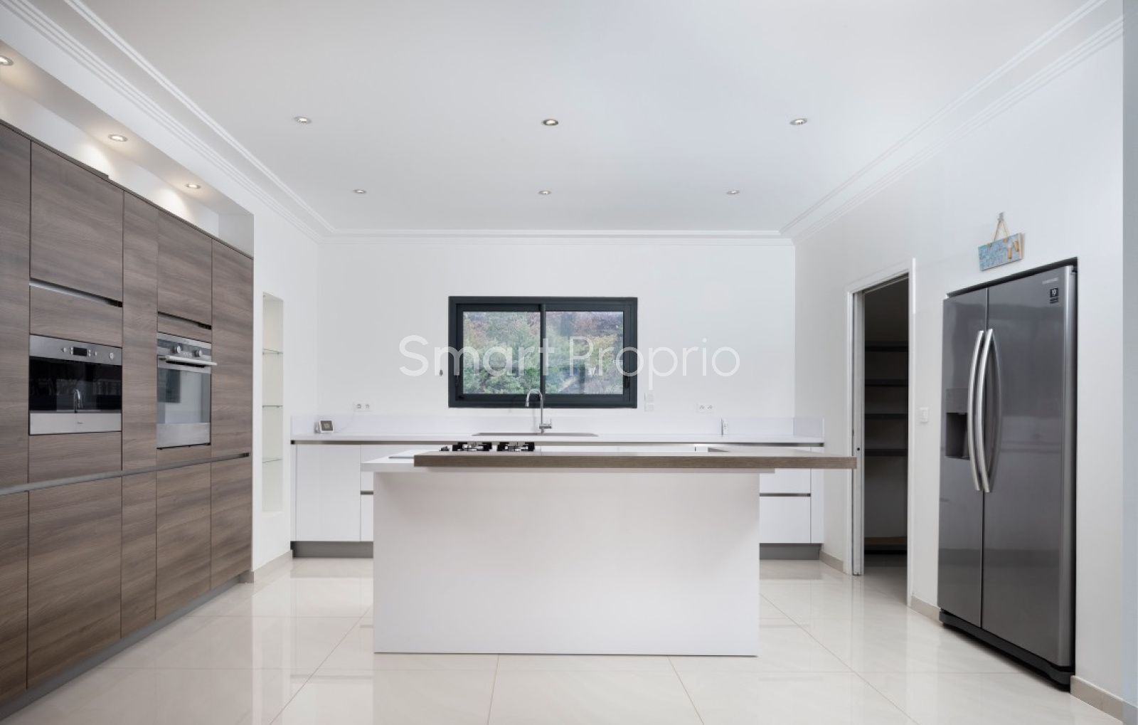 Prestations haut de gamme : plancher chauffant & rafraîchissant, volets roulants centralisés, porte blindée, alarme, pompe à chaleur.