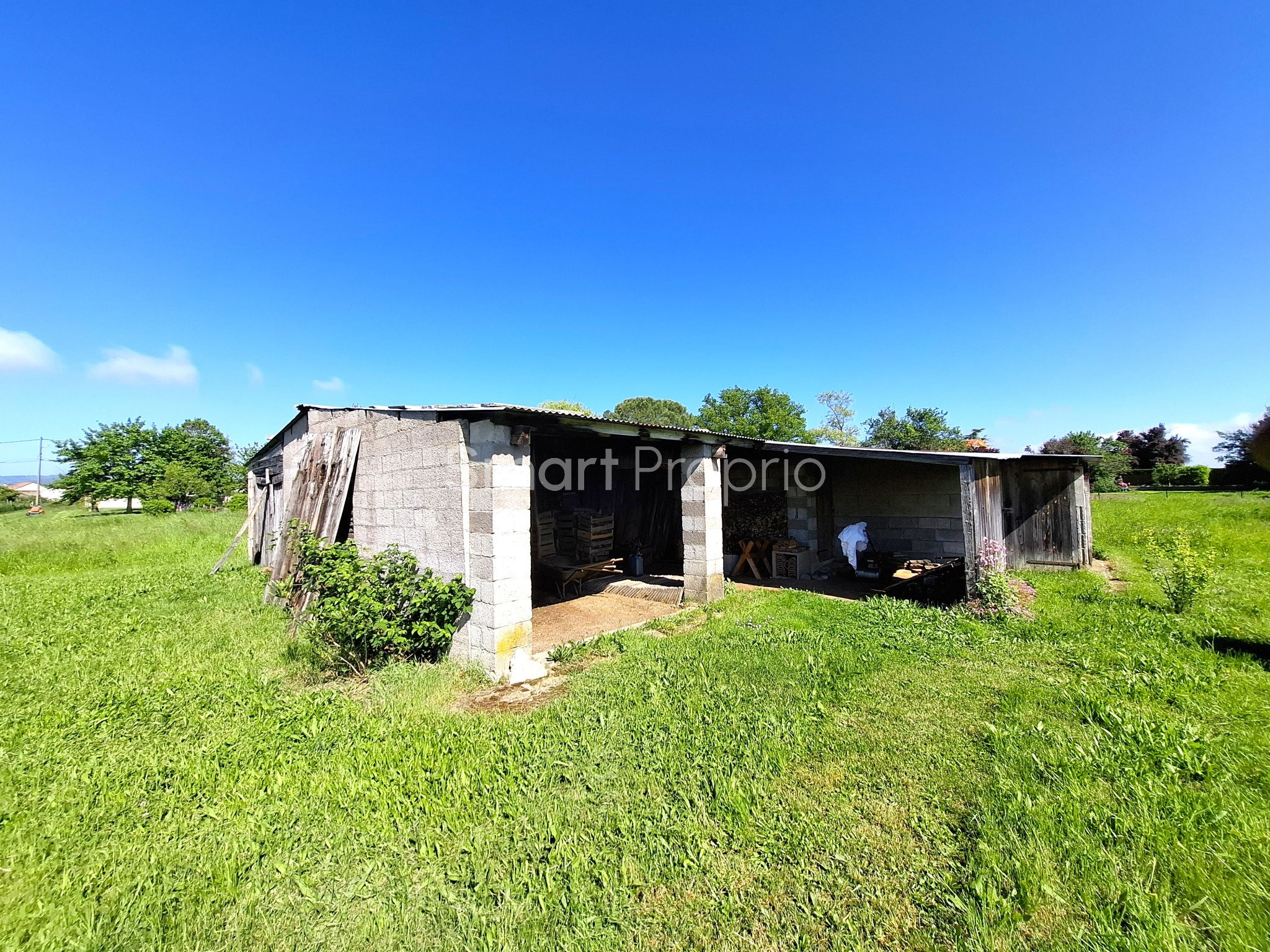 - Bâtiment indépendant de 110 m², actuellement utilisé comme dépôt et abri de jardin, incluant une partie poulailler.