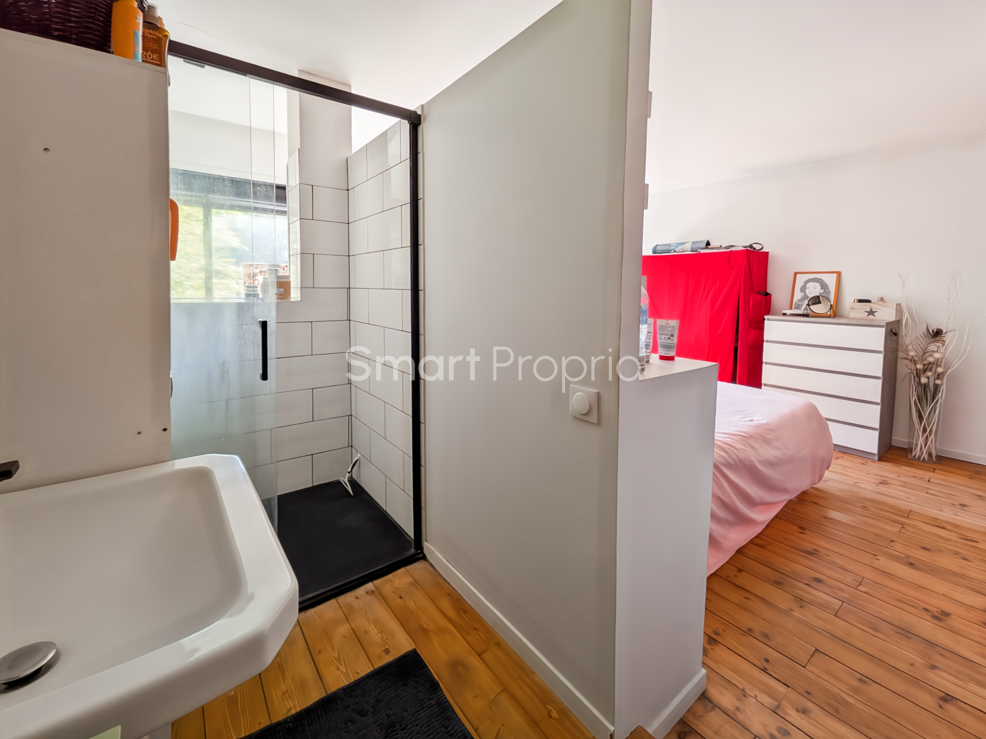 À l’étage, un palier dessert une grande chambre parentale avec salle d’eau, une seconde chambre avec salle d’eau, un WC séparé ainsi qu’un accès à une terrasse.