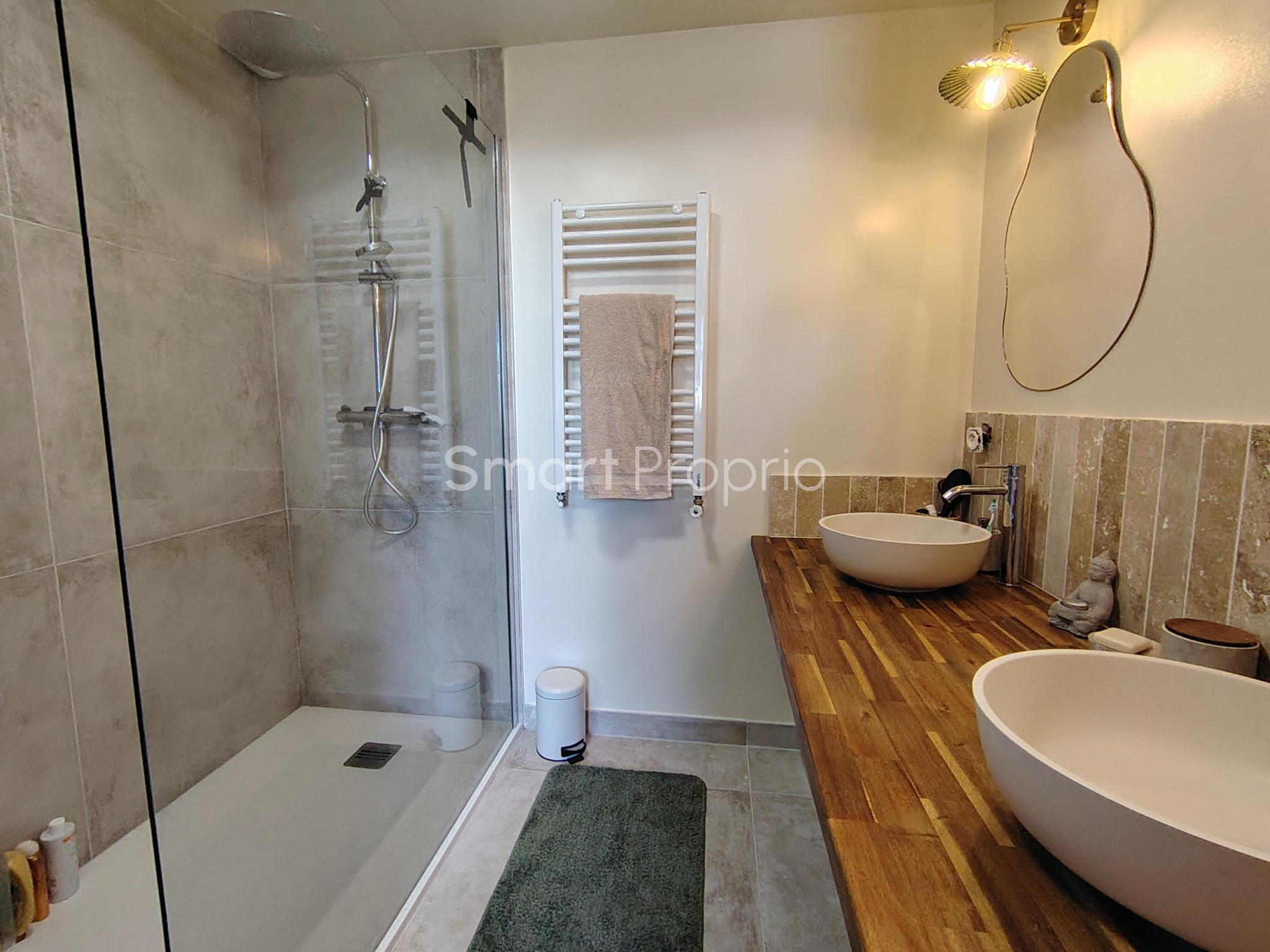 Le rez-de-chaussée accueille également une véritable suite parentale, conçue comme un cocon indépendant avec sa salle d’eau privative et son grand dressing, offrant un confort de vie rare et recherché. Les espaces techniques, parfaitement intégrés avec arrière-cuisine, buanderie et chaufferie, apportent une fonctionnalité discrète mais essentielle au quotidien. Le garage attenant est équipé d’un portail motorisé.