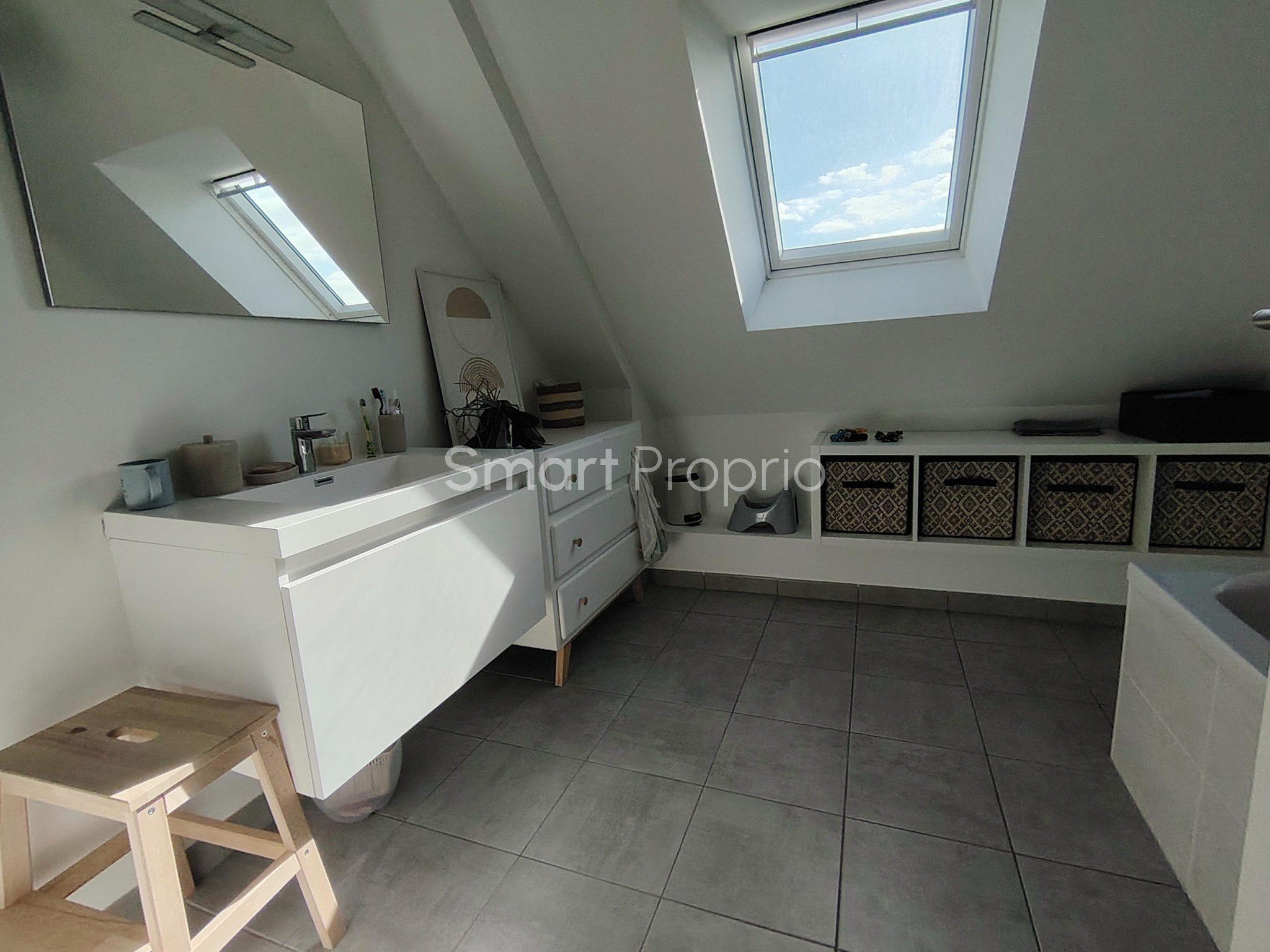 À l’étage, une mezzanine distribue trois chambres dont une, pouvant aisément devenir un bureau ou une salle de sport, ainsi qu’une salle de bains et des toilettes indépendants. Chacun y trouve naturellement sa place, dans une atmosphère à la fois sereine et harmonieuse.