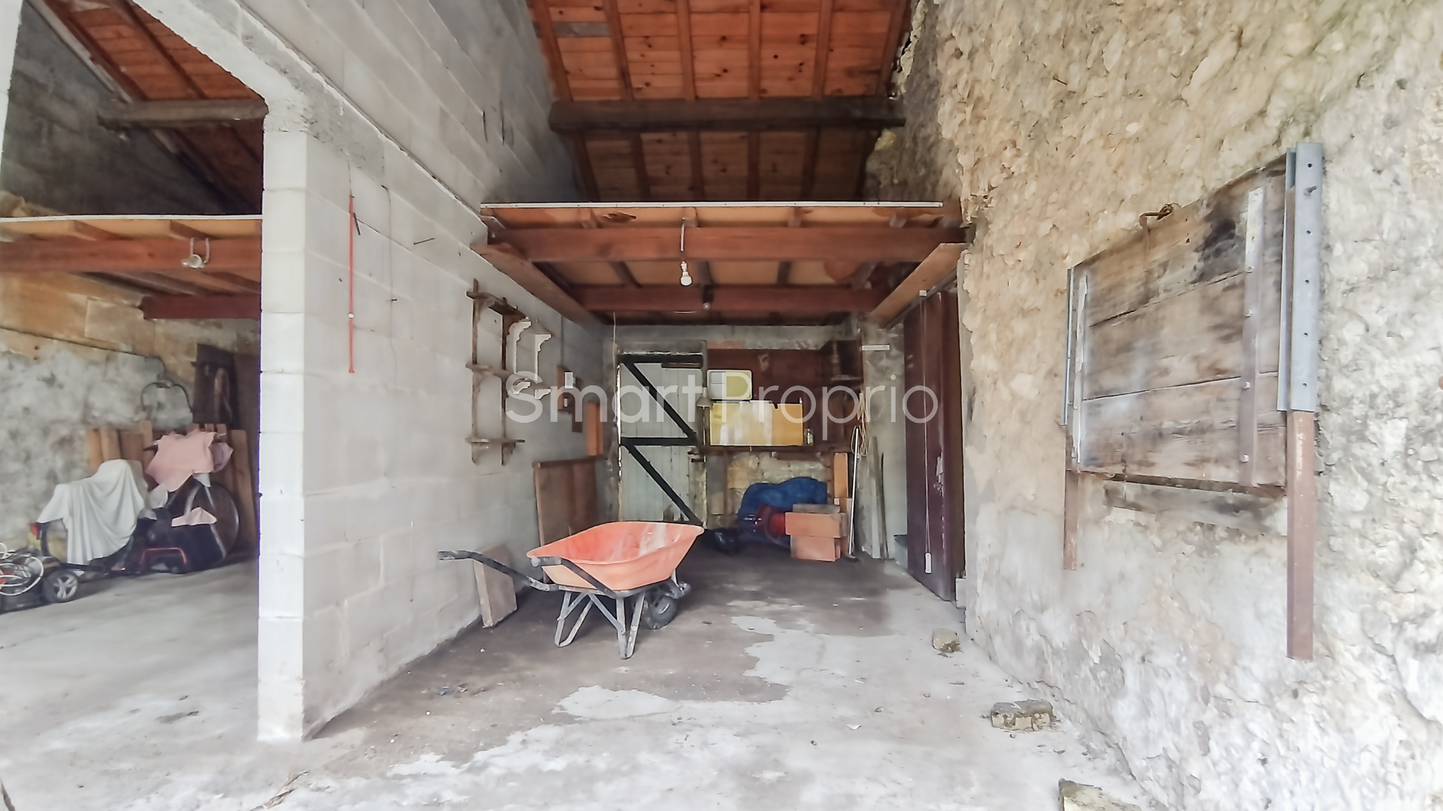 Un double garage indépendant (23 m² + 17 m²) situé sur sa propre parcelle offre un potentiel de transformation en habitation en R+1.