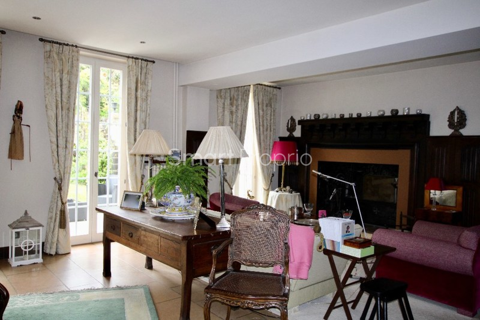 Les pièces de réception, baignées de lumière, séduisent par leurs volumes et leur élégance : double salon, salle de réception, cheminée d’époque et sol en pierre de Bourgogne.