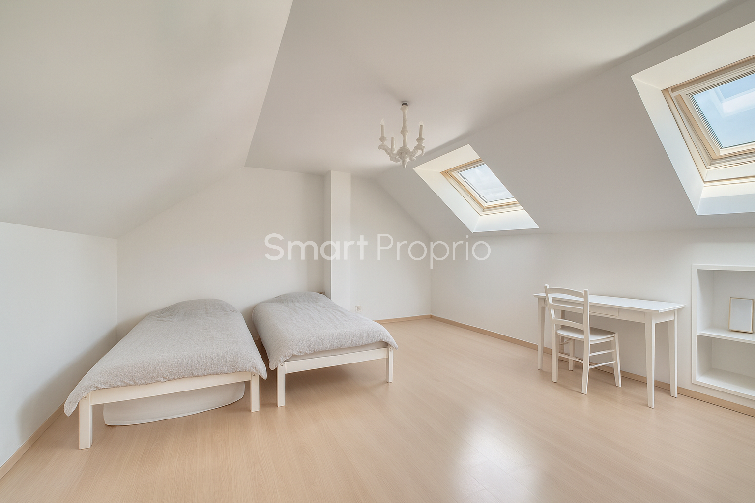 À l’étage, l’espace nuit se compose de trois chambres dont une suite parentale avec dressing et salle de douche privative, d’une salle de bains, d’une buanderie et d’un WC séparé. Les combles ont été aménagés en grande chambre supplémentaire avec salle de douche, idéale pour un adolescent ou pour recevoir. Un garage fermé complète le bien.