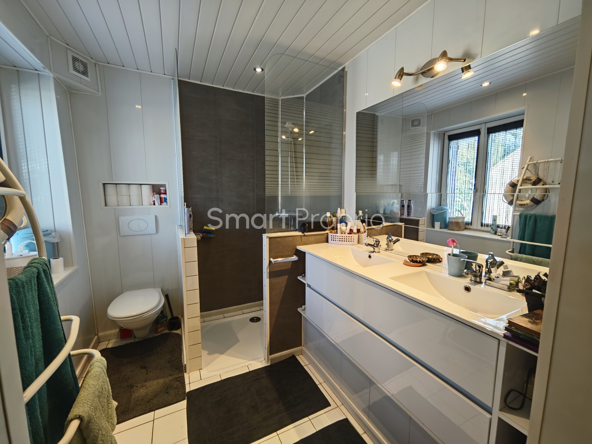 Ce niveau de rez de chaussée propose également une buanderie,un WC indépendant, un dressing, puis une grande suite avec une salle de d'eau avec grande douche à l'italienne et des WC. A l'étage un large couloir dessert trois très belles chambres, une salle de douche et WC indépendant.