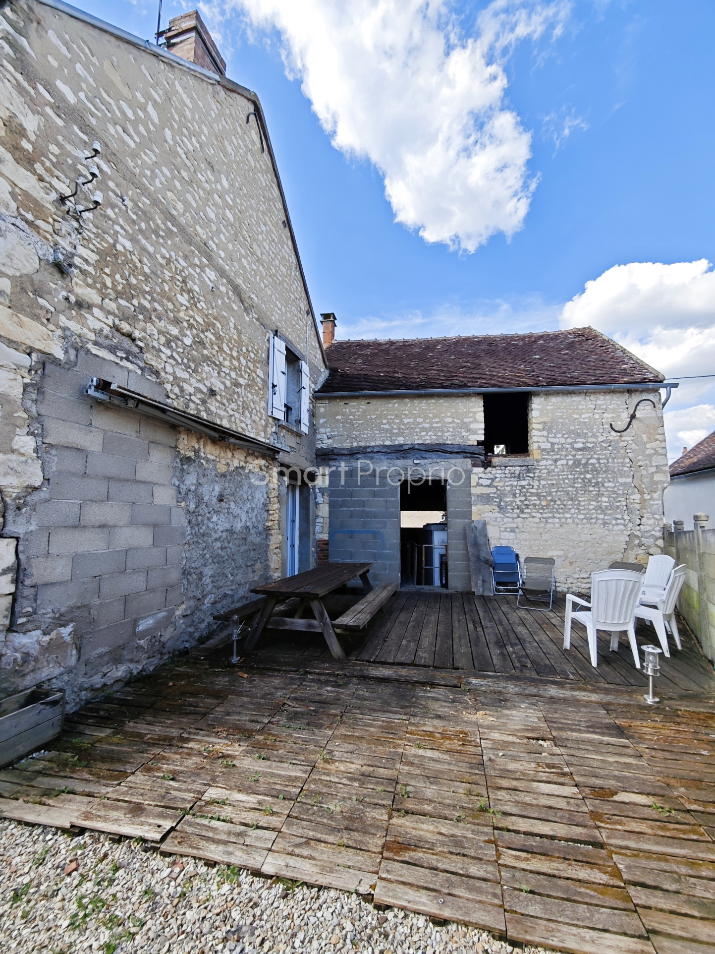 La proprièté offre une grande cours d'entrée avec appenti et deux places de voitures, une cours arrière avec terrasse / petit jardin.