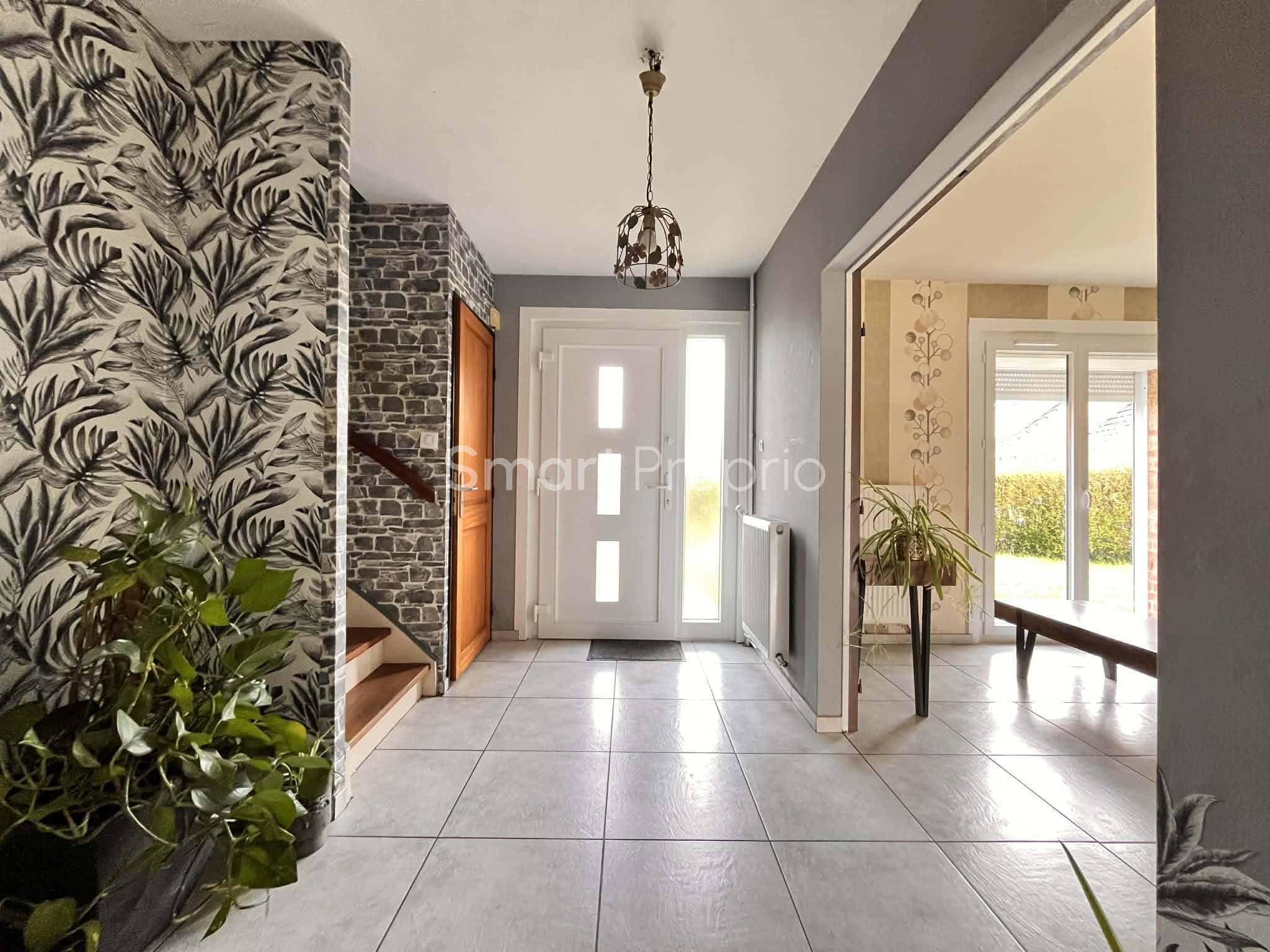 Salon Salle a manger Cuisine équipée 4 chambres dont une avec coin dressing Salle de bain Terrain clos Garage double 171000e hni Chaudiere gaz, feu a pellet et double vitrage recent Isolation des comble prévue Aucun travaux a prévoir Toiture ok Tout a l'égout ok Proche école, commerces ,transports