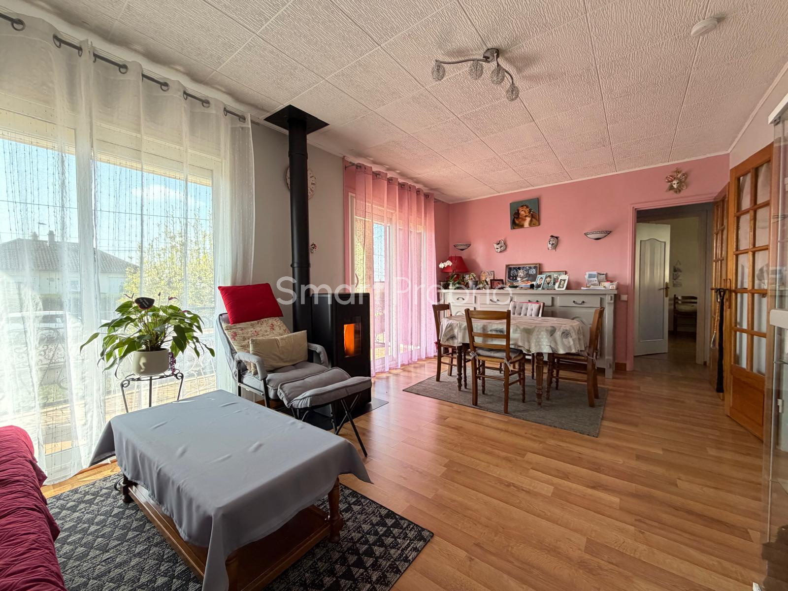 Vous apprécierez le confort du poêle à granulés ainsi que le balcon ouvert sur le séjour, idéal pour profiter des beaux jours et y installer un espace repas.