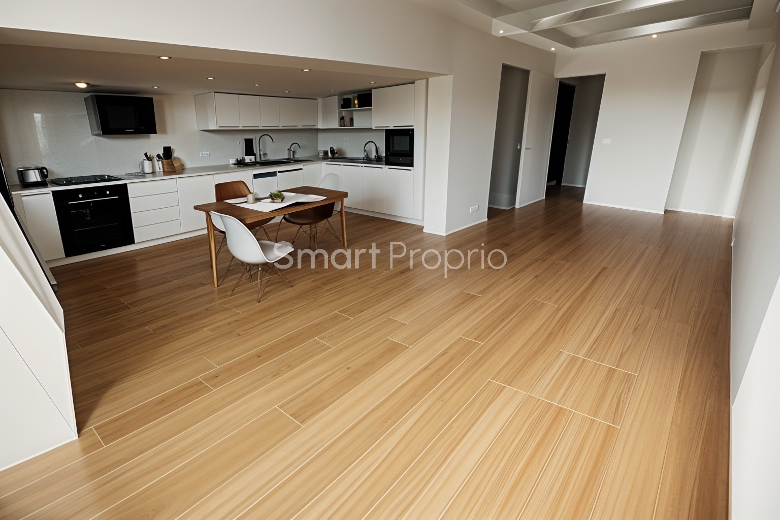 - tout le sol du rez-de-dchaussée refait en parquet contre collé chêne massif pour passage intensif et bouchage de la cave