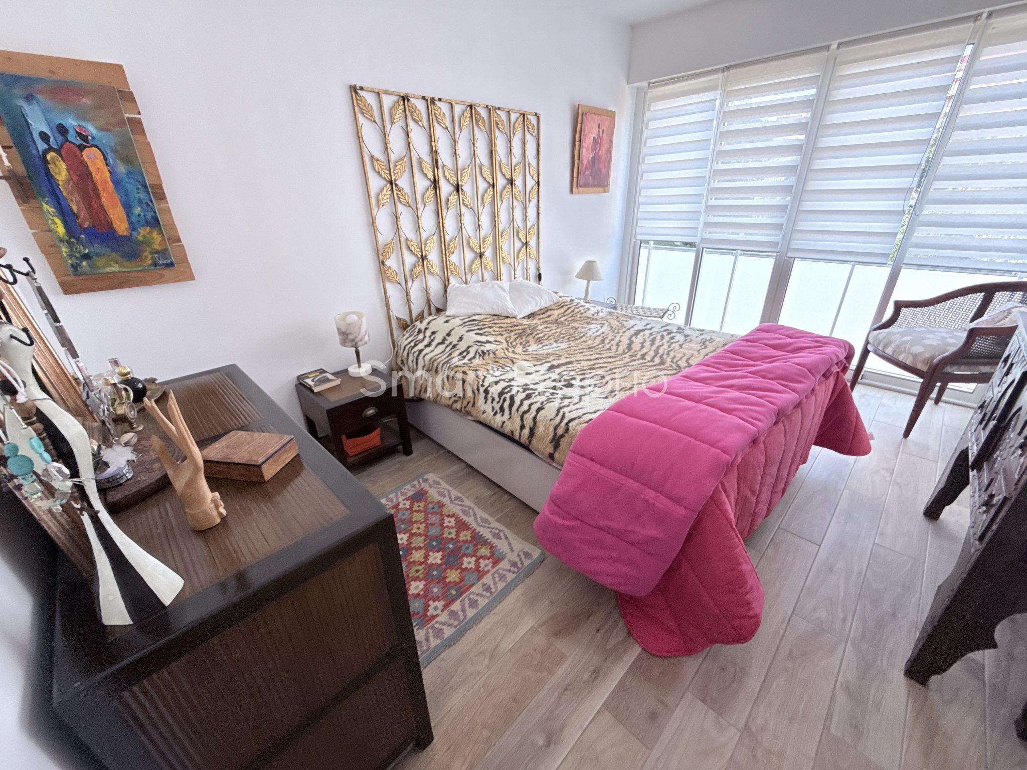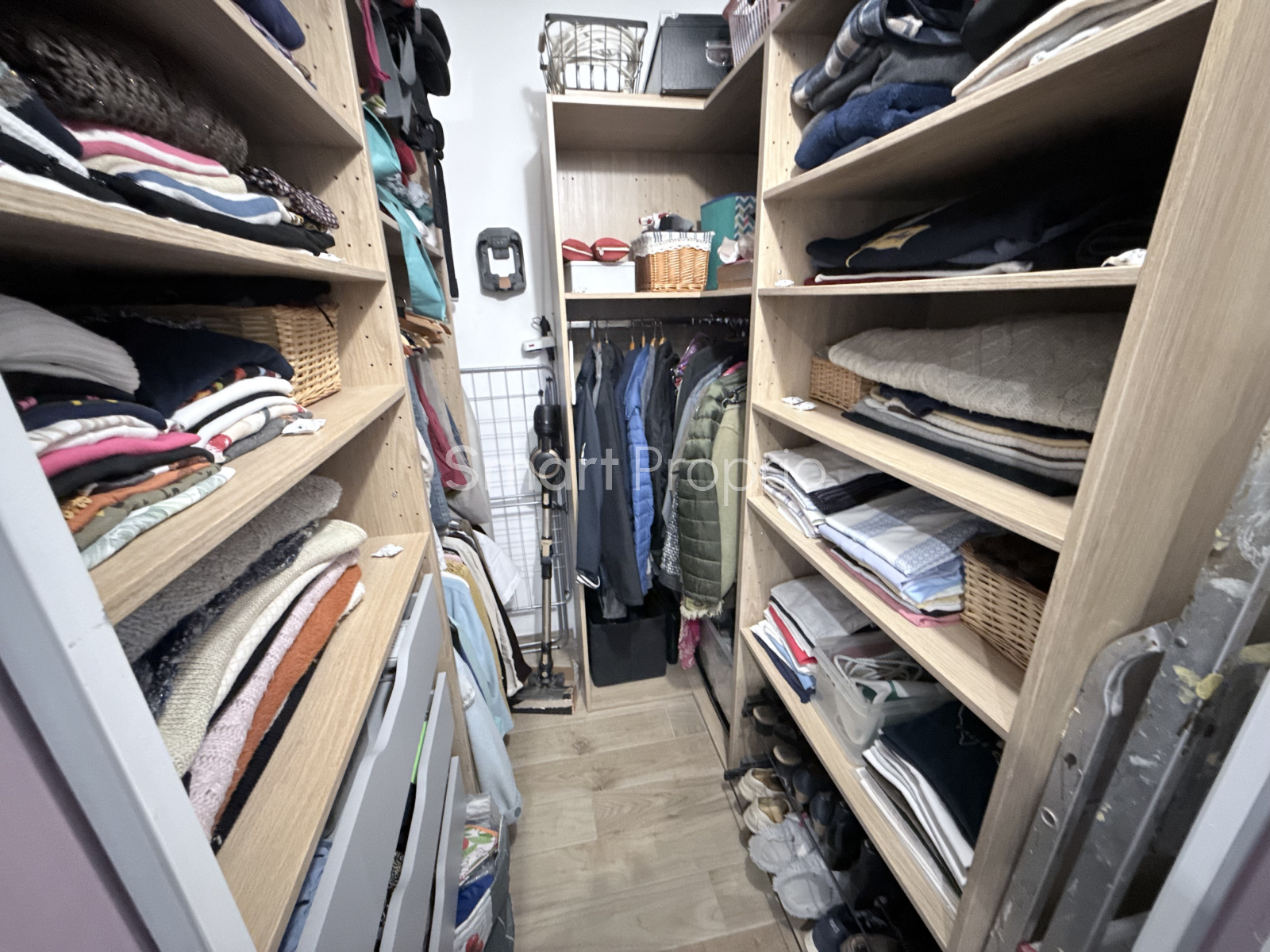 Un joli dressing vient compléter les prestations, offrant un espace de rangement pratique et élégant.