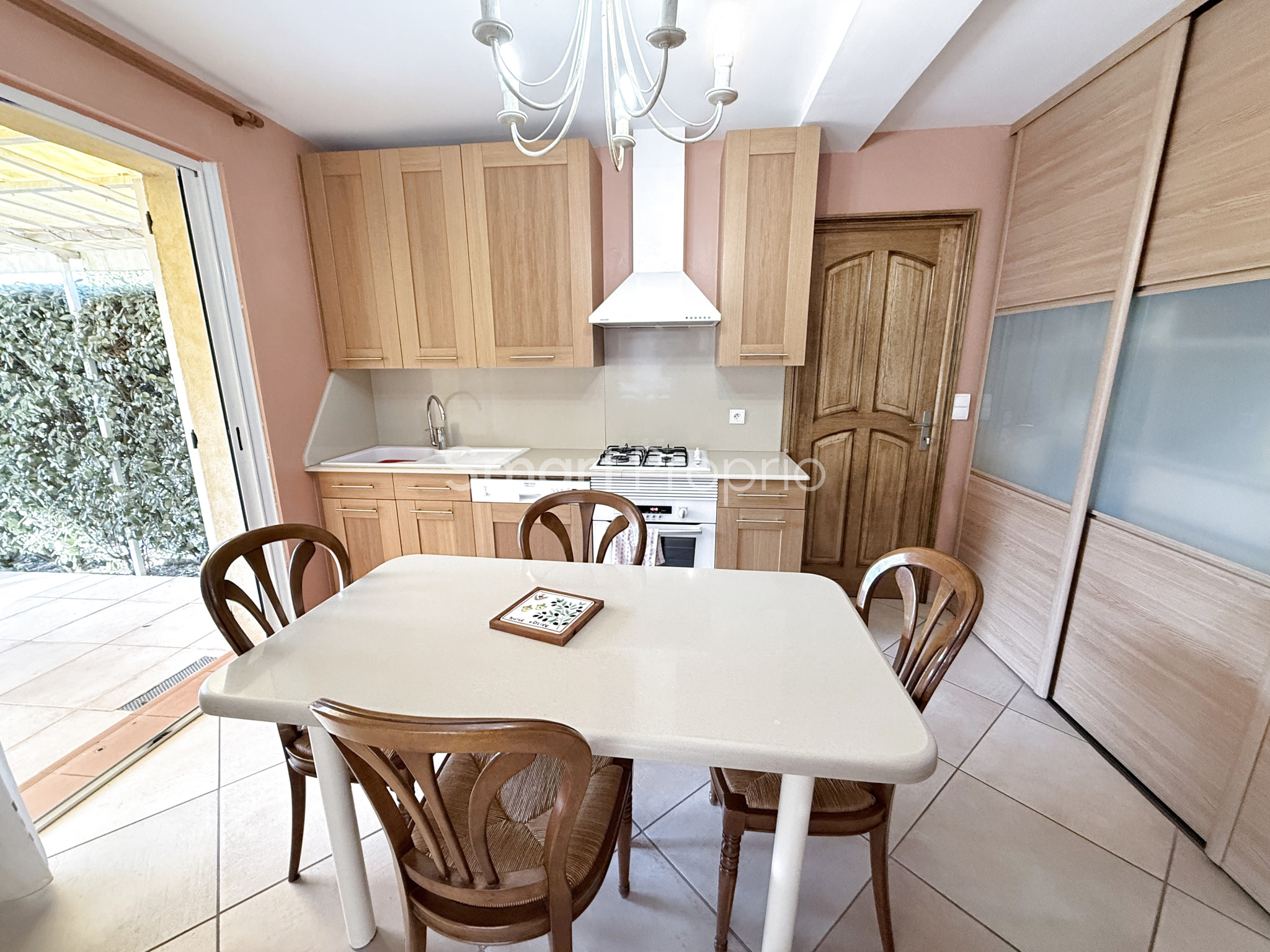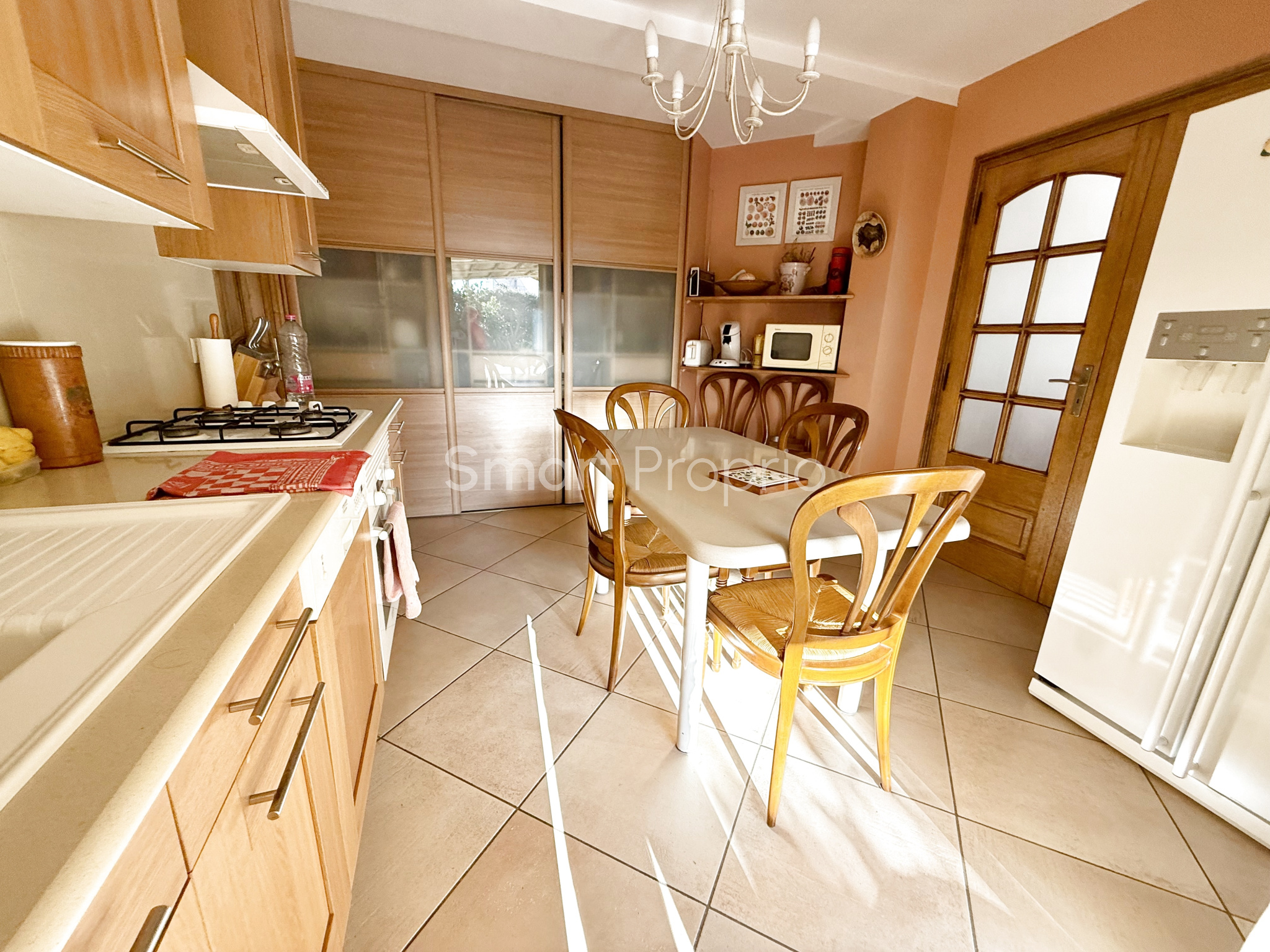 Une cuisine entierement équipée avec un accès direct sur une seconde terrasse pour les repas en famille en plein air et ombragé