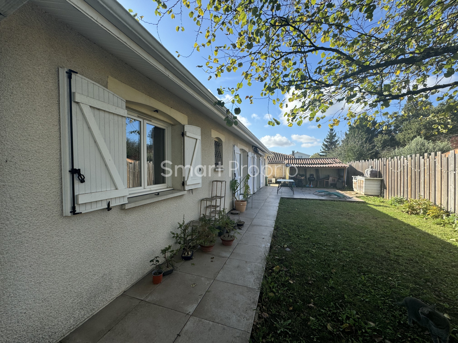 A l'extérieur une belle terrasse de 50 m2 vous attend pour profiter des beaux jours, donnant sur un jardin arboré avec des arbres frutiers, un poulallier et un coin potager.