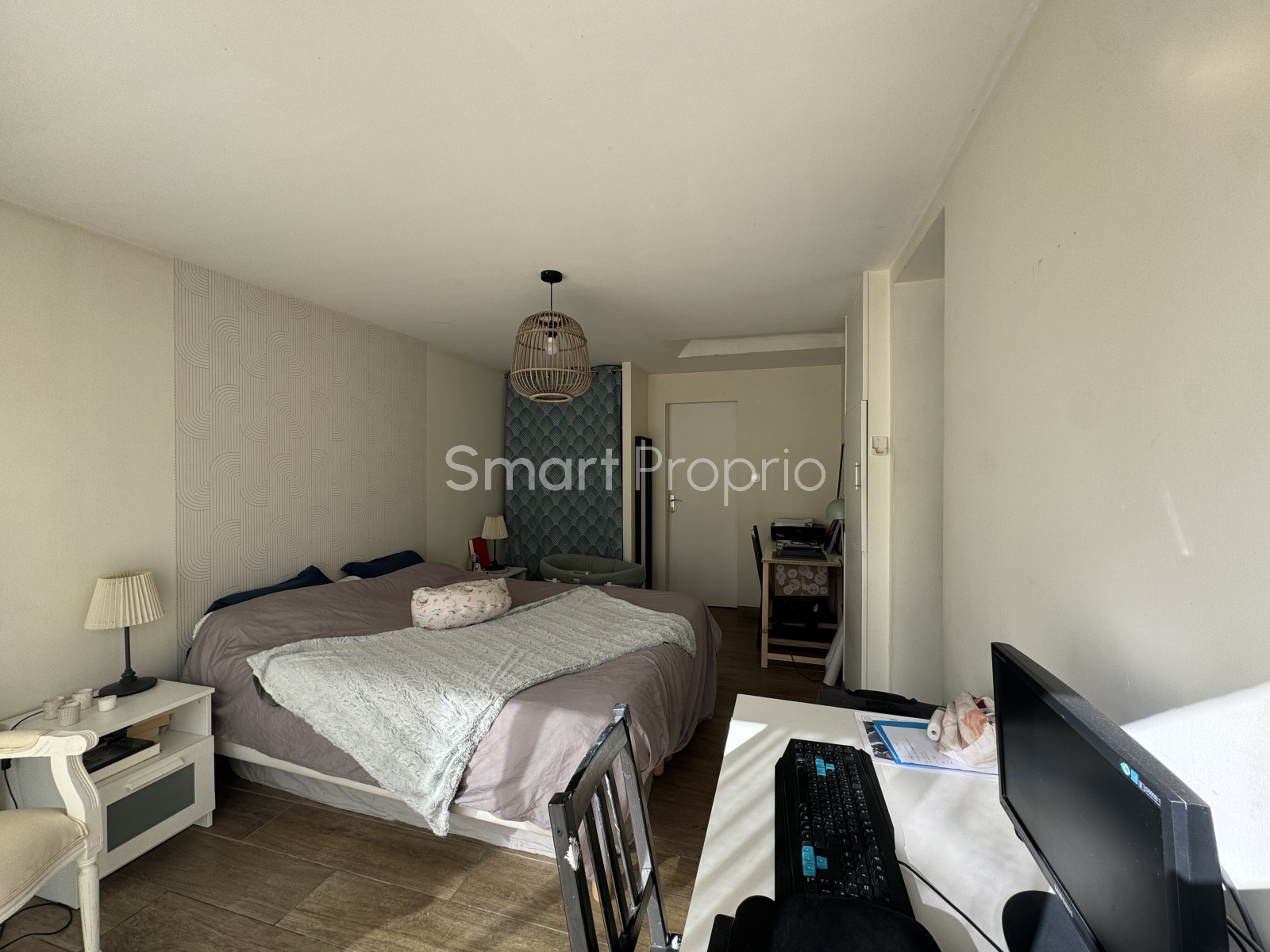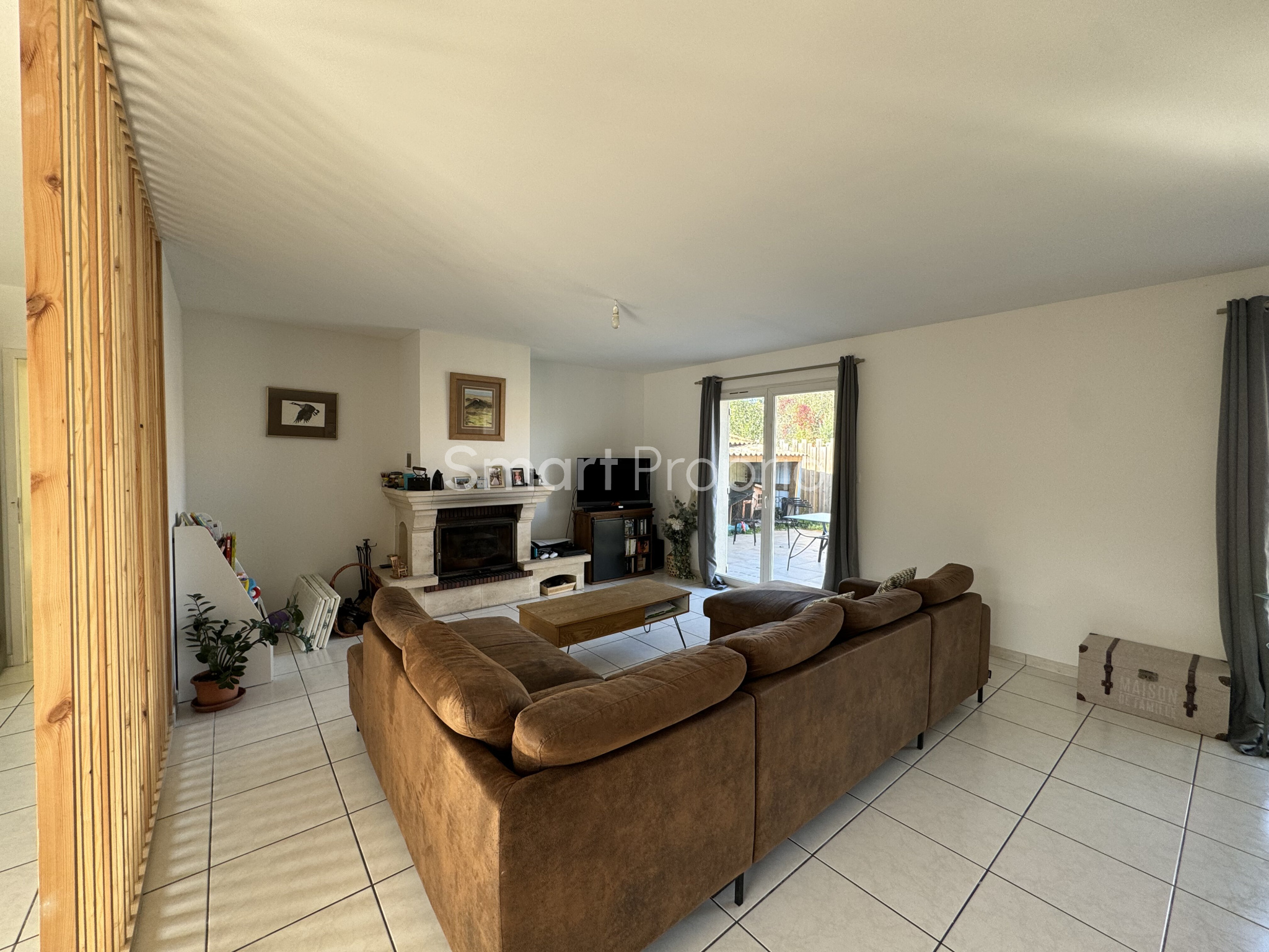 Ce bien se compose d'une entrée avec placard, d'une pièce de vie lumineuse avec une cheminée en pierre qui apporte une touche chaleureuse et authentique.